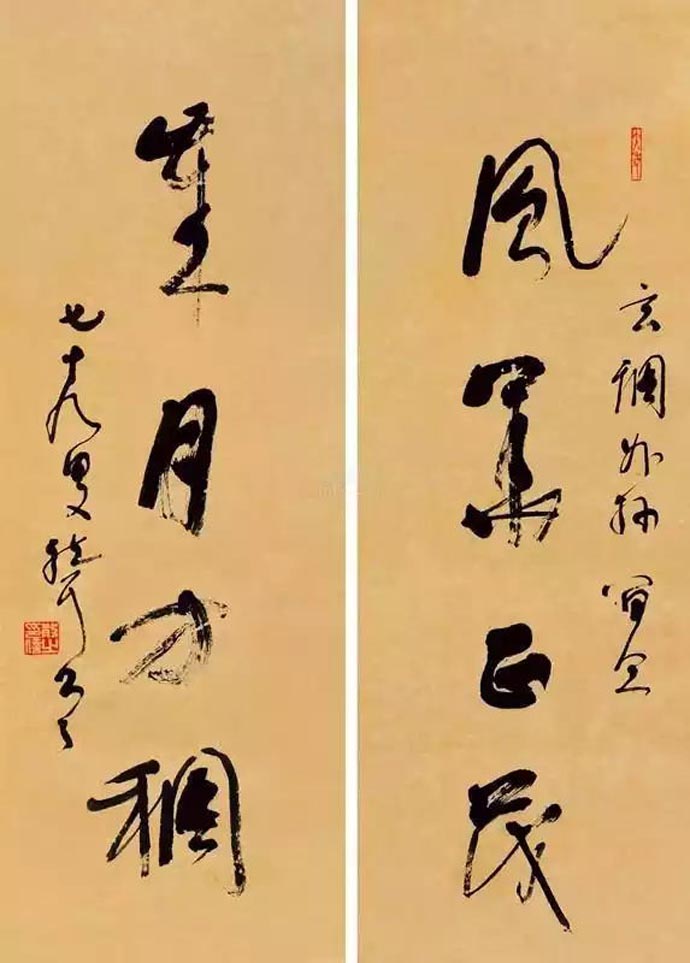 林散之专擅草体,意境高远;沙孟海精研榜书,风格豪迈。林散之书取正势,多用圆笔;沙孟海书取斜势,善用方笔。