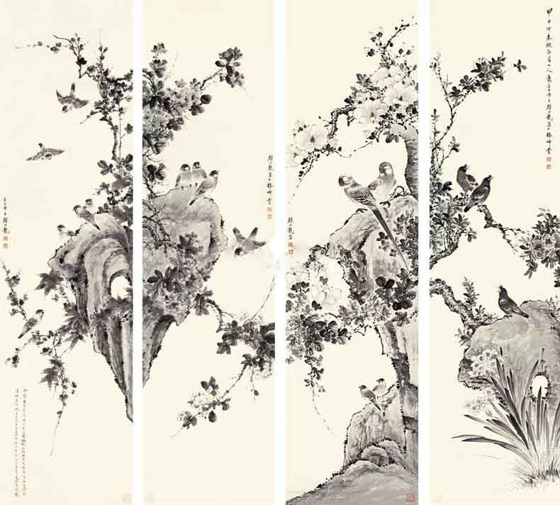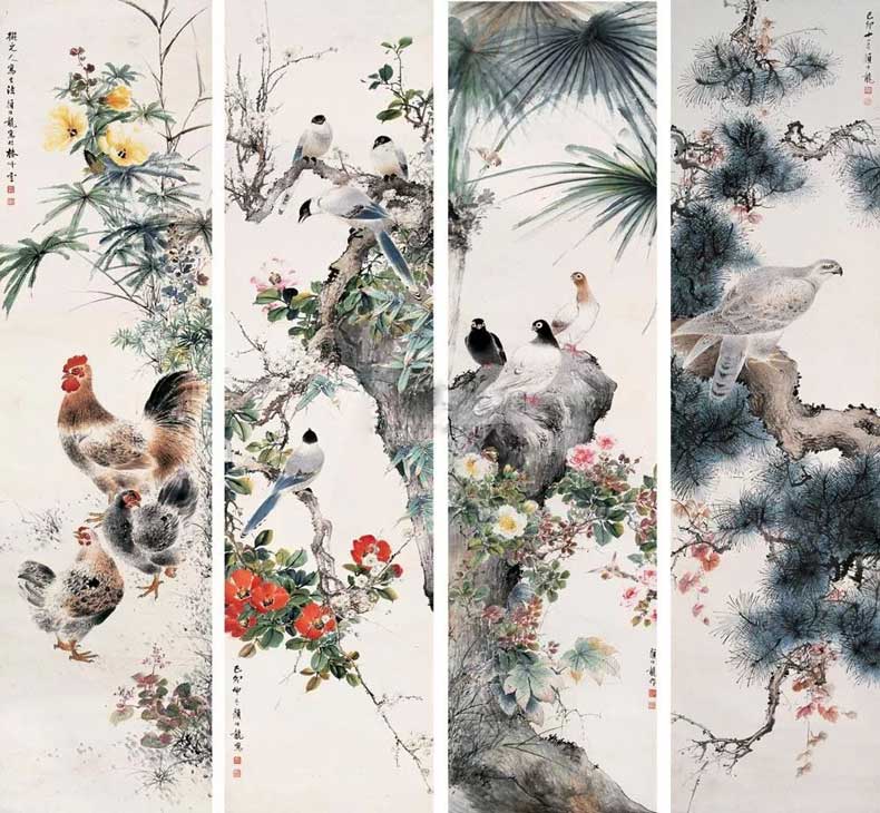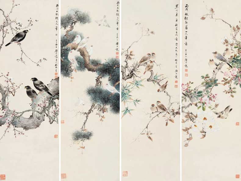 8、1939年作 花鸟 四屏 110.00万