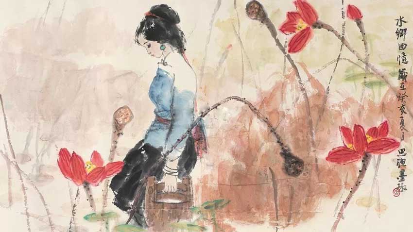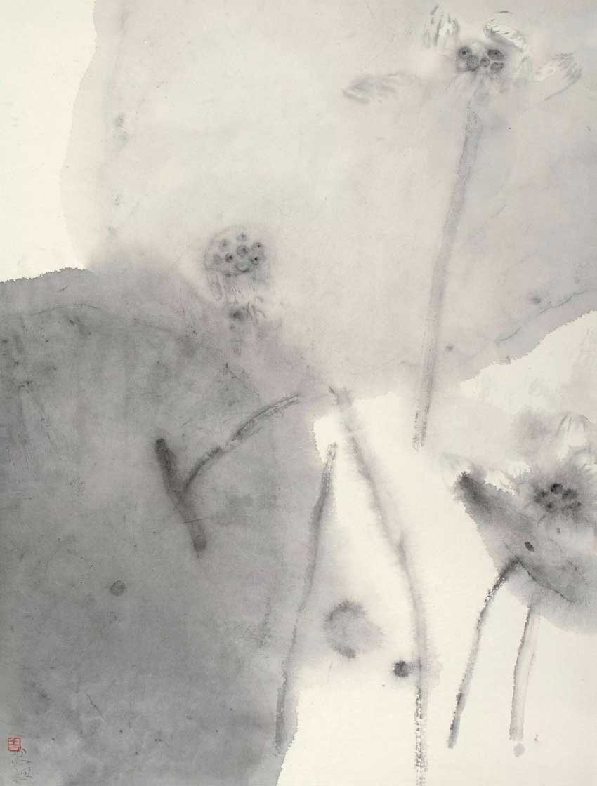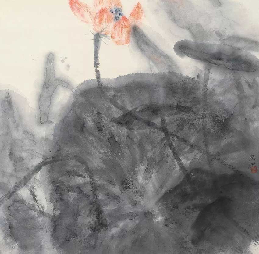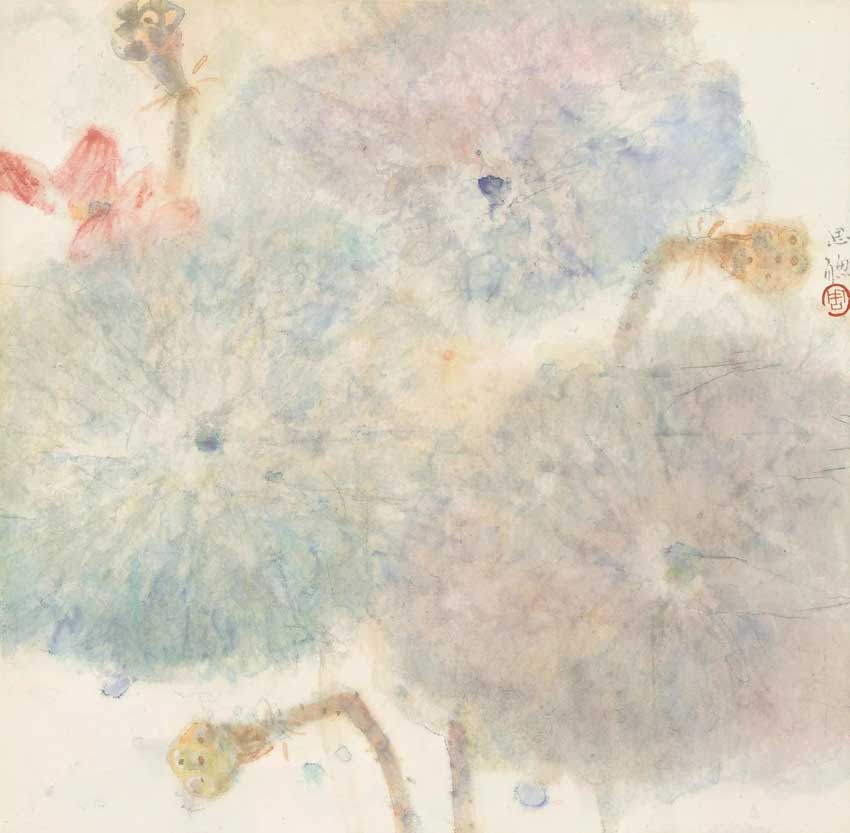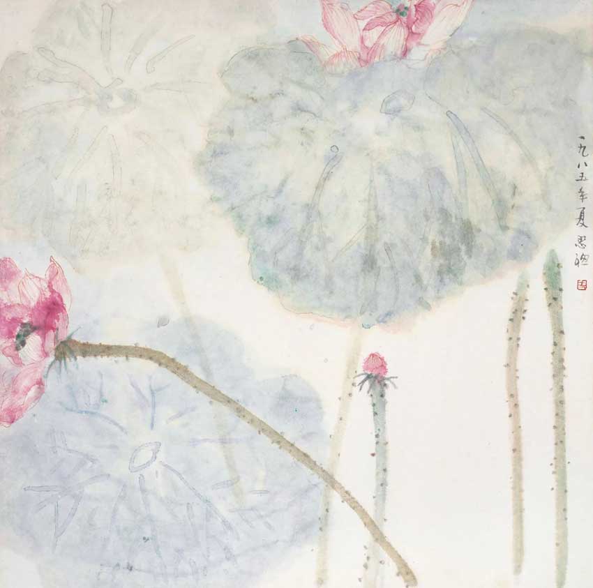 关于周思聪的荷花,她的先生卢沉曾这样评价:思聪画荷,没有明显的师承,也没有速写的积累,完全凭想象画。她早期的荷花,形象具体,比较写实,用色多,后来趋向于单纯,以墨为主,越画越虚。