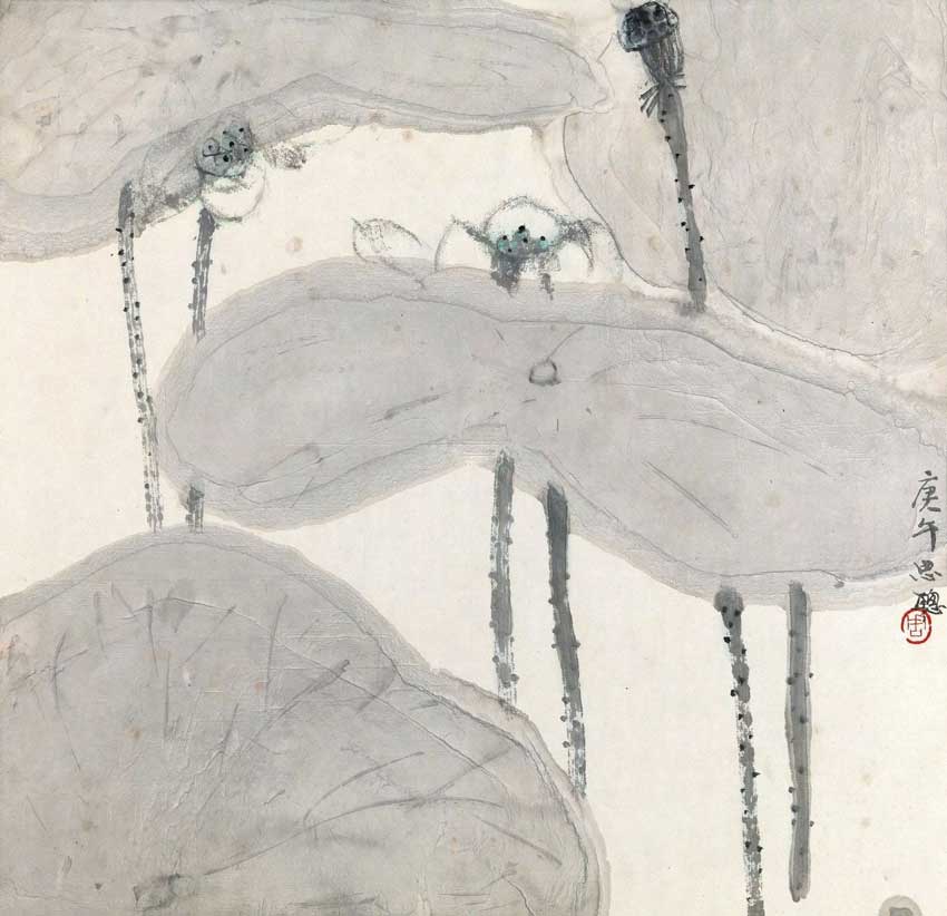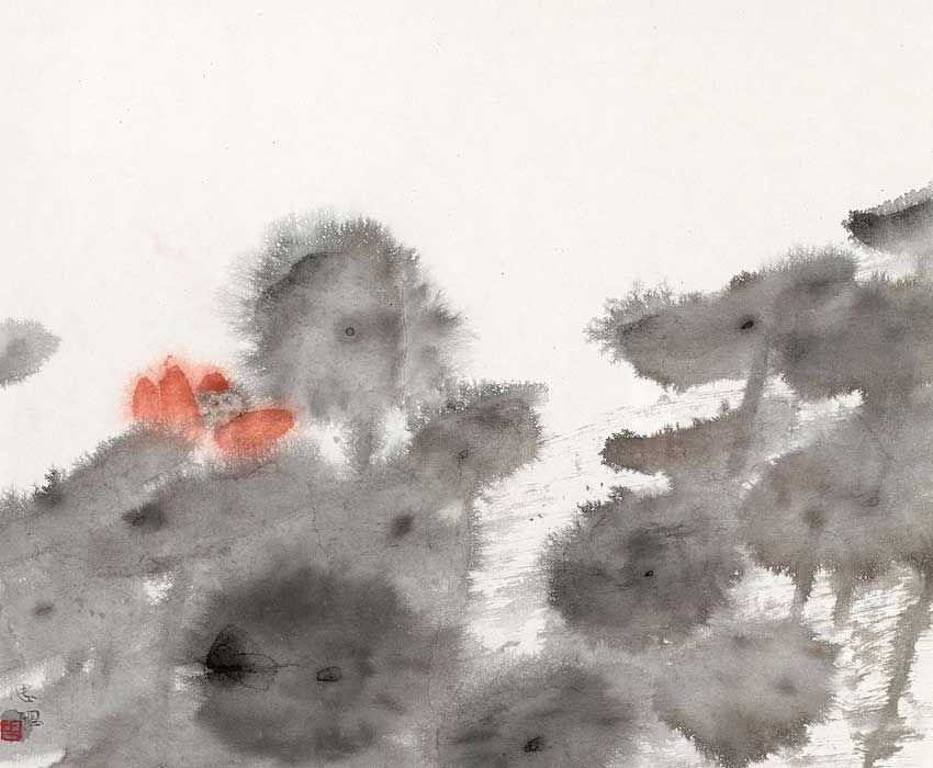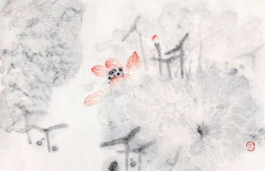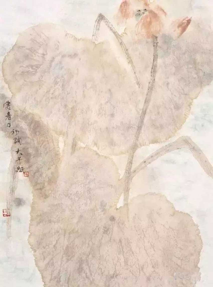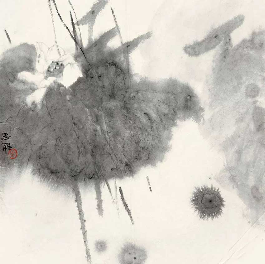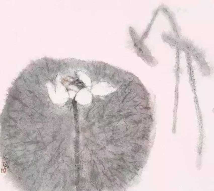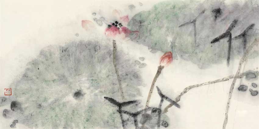 周思聪把荷画的单纯、不染、洁净、清雅,她从早期追寻雄浑审美逐渐慢慢平淡,把沧桑化作了一道清澈,她的荷在静观之中,立足于平常而超越平常,立足于事物而超越事物,这种境界来自于周思聪的无声之声,来自于她心底深处的静谧与芳香。