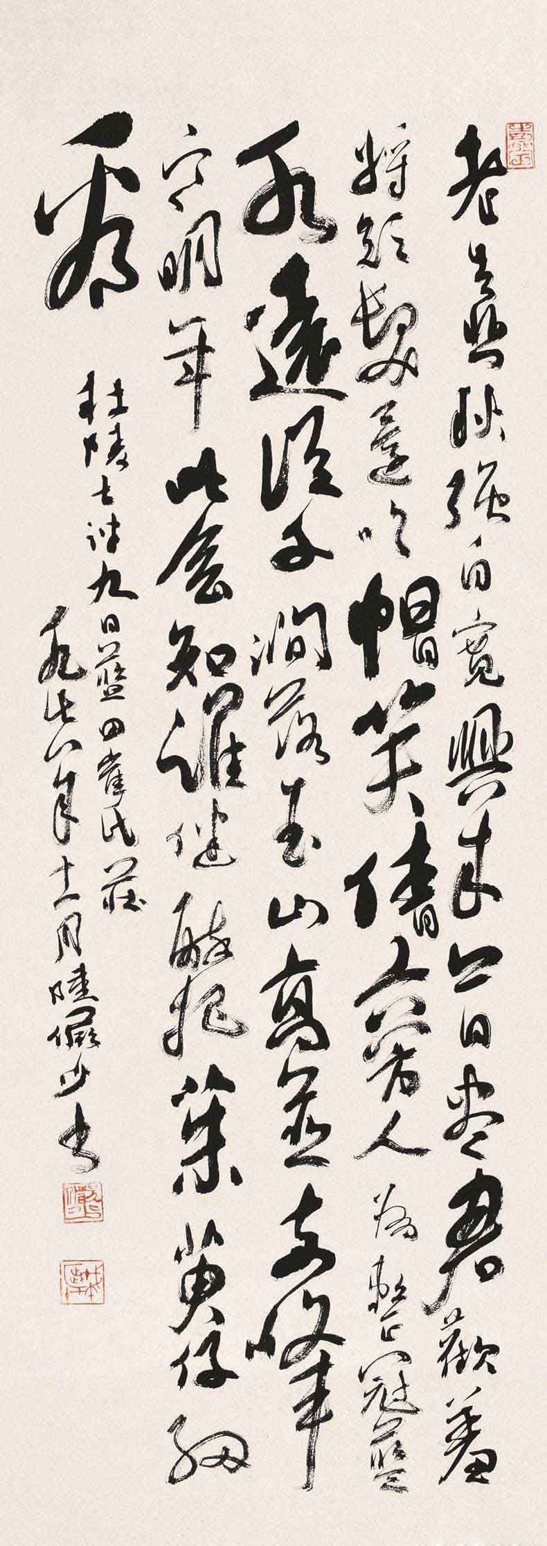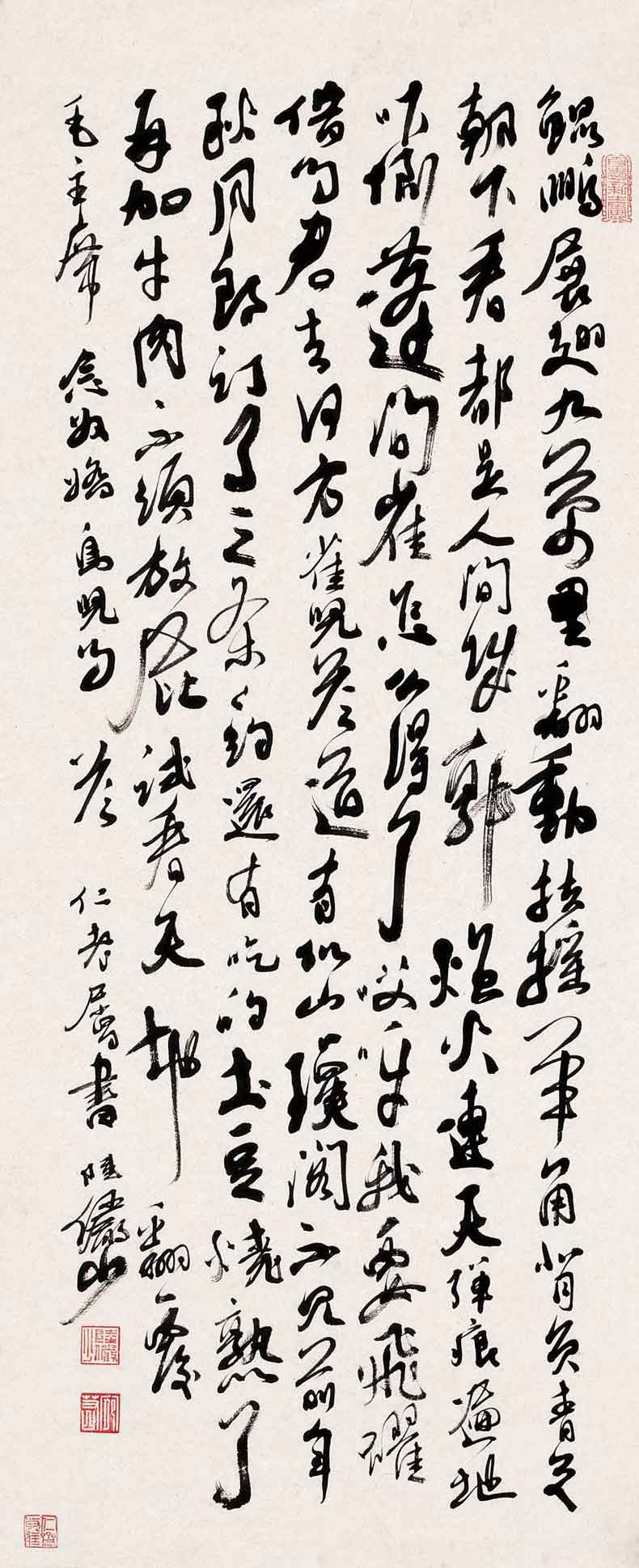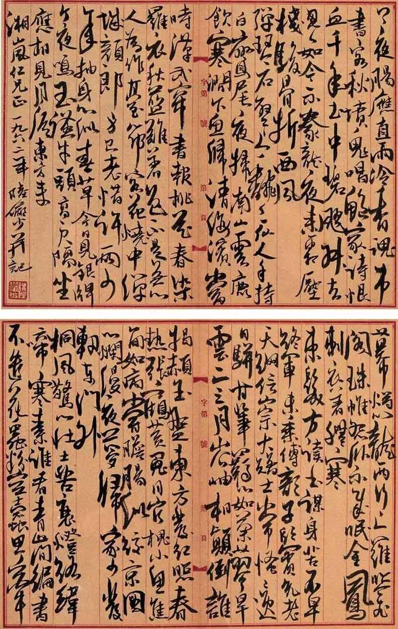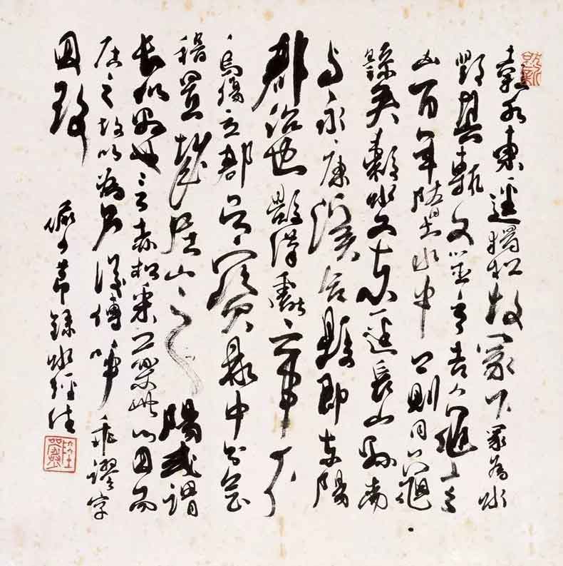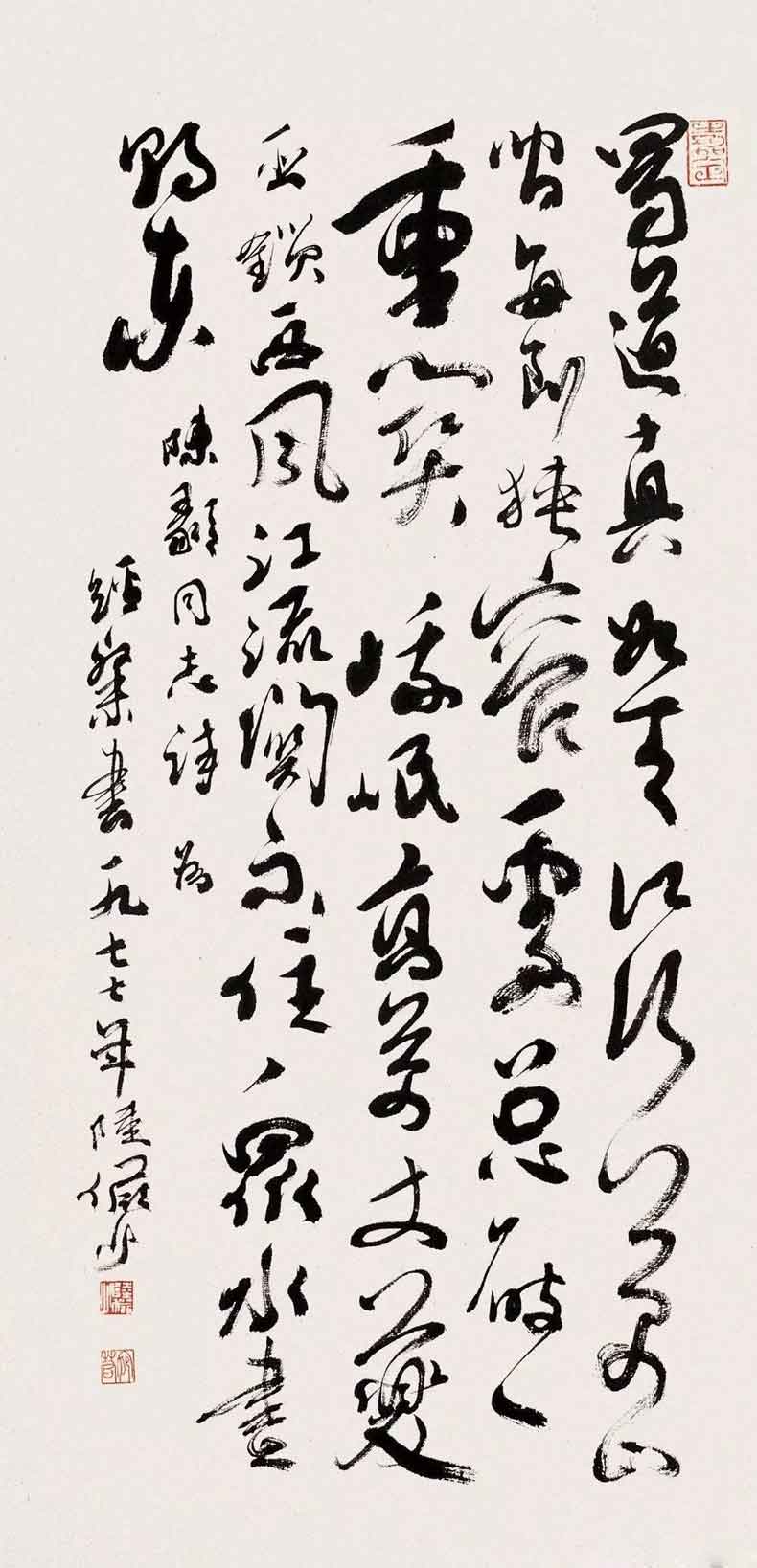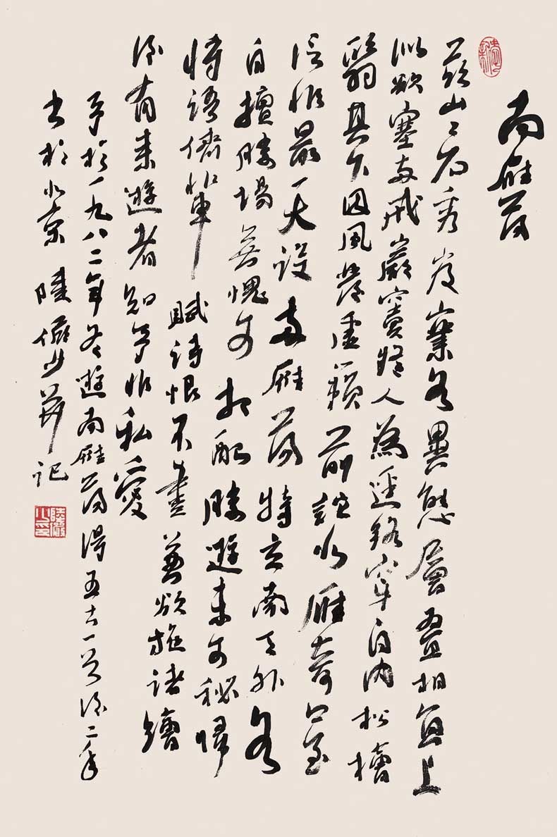 陆俨少(1909年-1993年)的书法,有两个特点:一是博采众长;二是自出新意。他还曾说,就画画用笔来说,写字是最好的训练方法,学画宜学书,字写好了,不仅题款可以增加画面美观,而在画时,对于点线用笔,帮助实多。