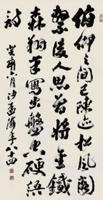 早在2014年,沙孟海的书法作品《草书中堂》就拍出207万的高价。作品见下图: