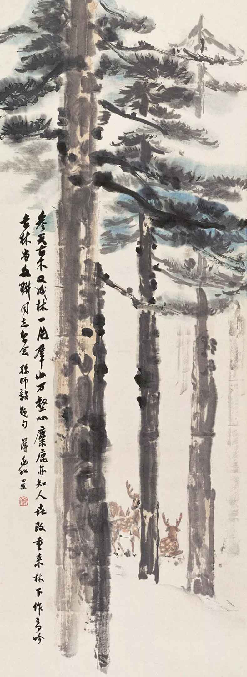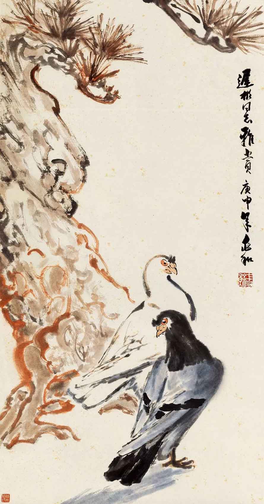 △1980年作 松下双鸽图 79×41.5cm
