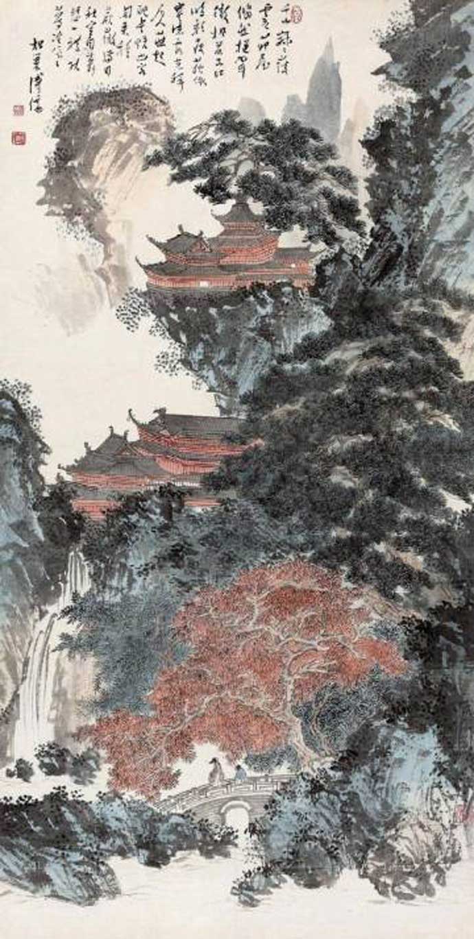 这位清朝皇室的后裔,大起大落之后,悟透了平淡才是人生的真理。此后,他寄情于山水书画之中,畅游在心灵恬静之处。溥心畲可谓绘画之全才,仅山水一项之成就便非同一般,青绿、浅绛、水墨皆信手拈来,临古山水、台阁界画、没骨山水亦不在话下,每作画必题诗作文于其上,无不令人叹为观止。