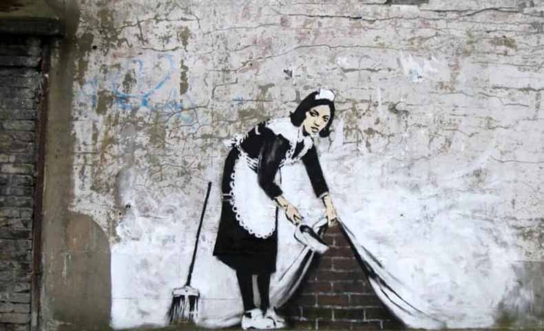 班克西是一个大名鼎鼎却又极其神秘的英国街头涂鸦画家,任何不起眼的废物都有可能被班克西转变成为艺术,并且重来不公开自己的身份。