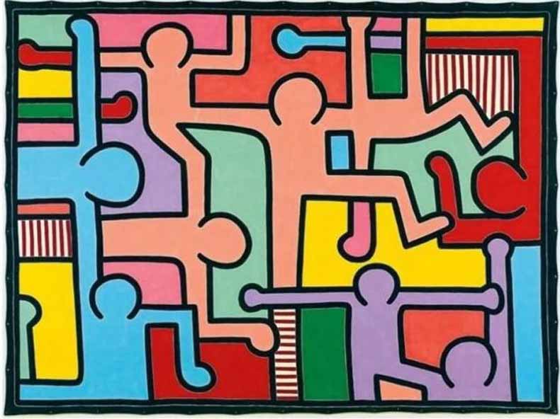 凯斯·哈林是美国80年代青年文化中最重要的街头艺术家和社会运动者。他的创作使用简单的轮廓线条,创造了许多不具表征的小角色,这些图案看起来天真单纯,却也富有浓厚的寓意。他还曾与多位著名艺术家及歌手合作,包含波普艺术大师安迪·沃霍尔及流行女歌手麦当娜。