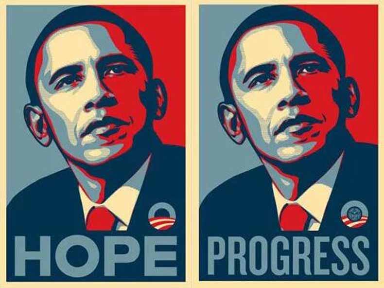 真正让谢帕德名声大噪的是 2008 年时,他为美国第一位黑人总统奥巴马绘制的“HOPE”竞选海报。他不仅画了海报,还去美国各个城市的街头张贴自己的海报为奥巴马拉票。