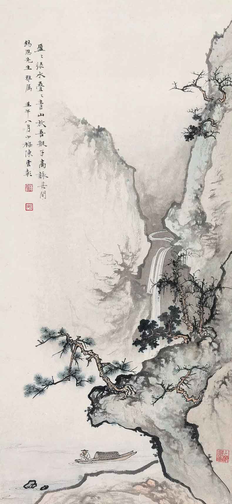 △陈少梅 1942年作 松泉放艇 68×32cm