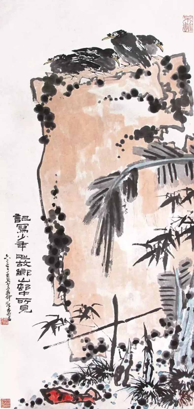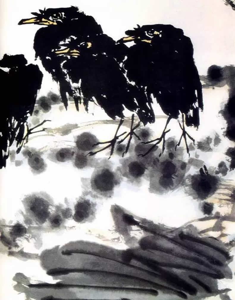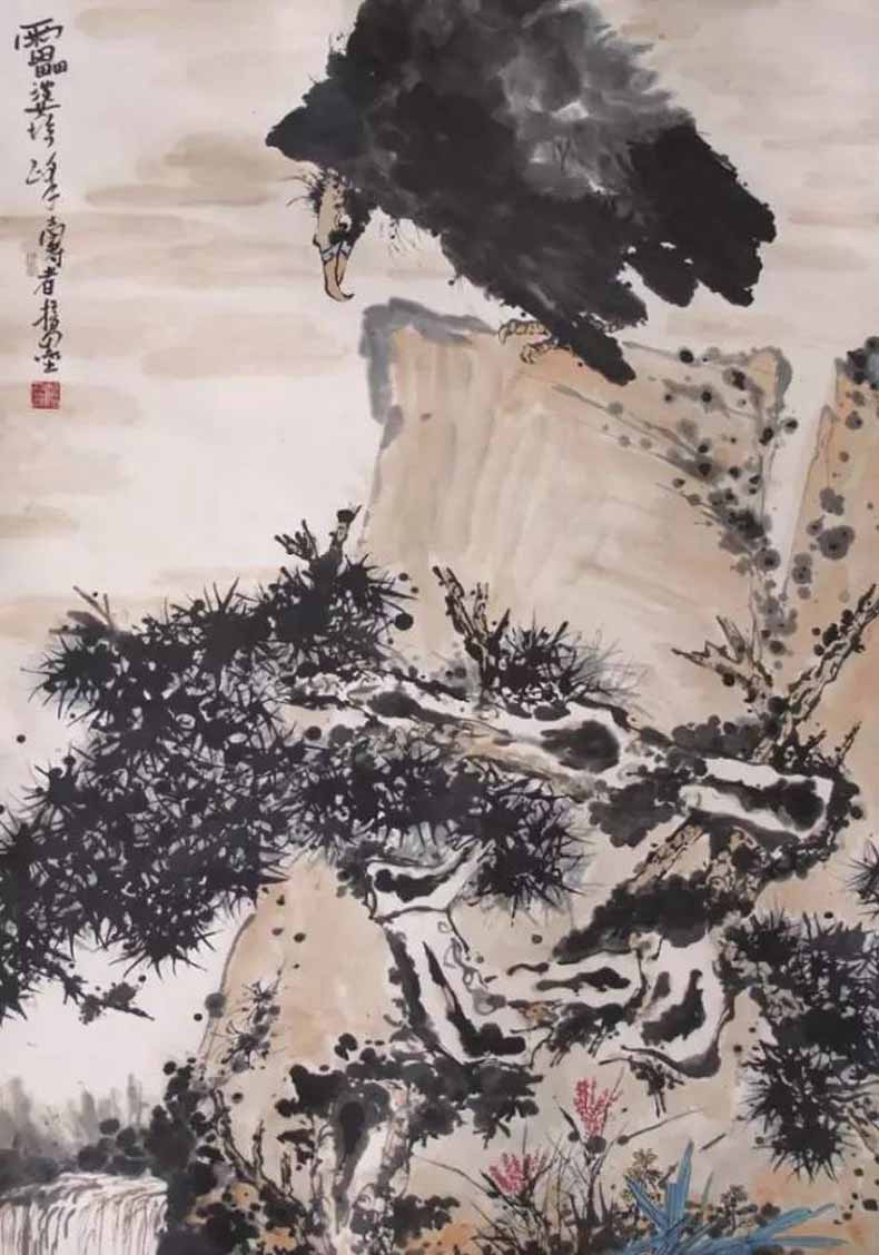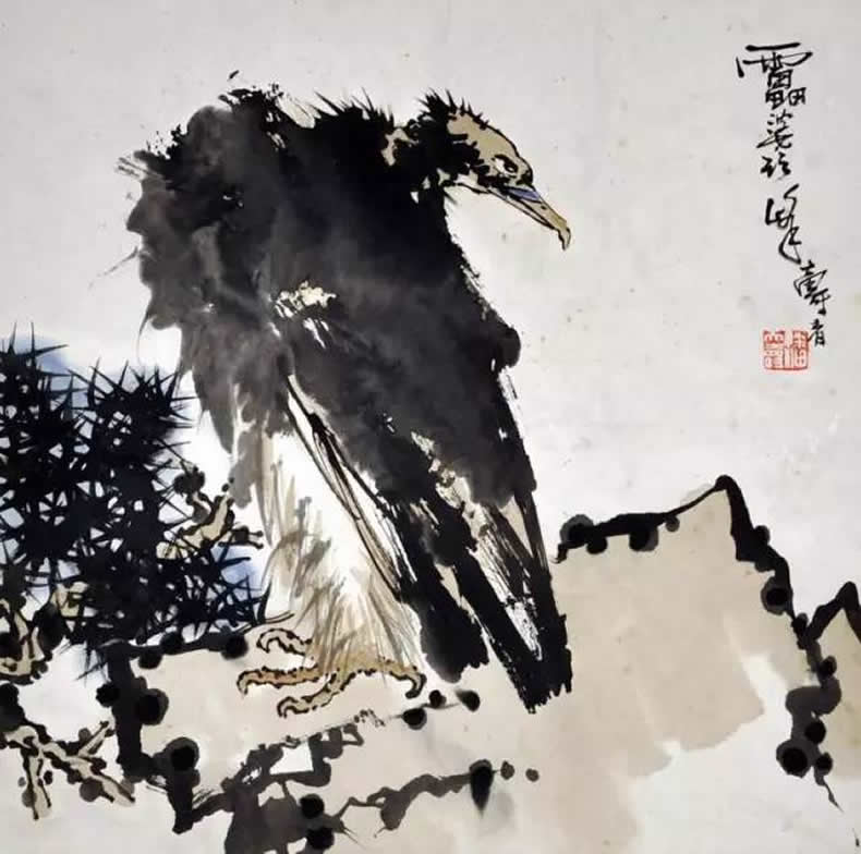 潘天寿还擅作指画,意在追求变化和指墨所特有的韵味,他笔下的许多鹰鹫图就是其指墨画的杰作。