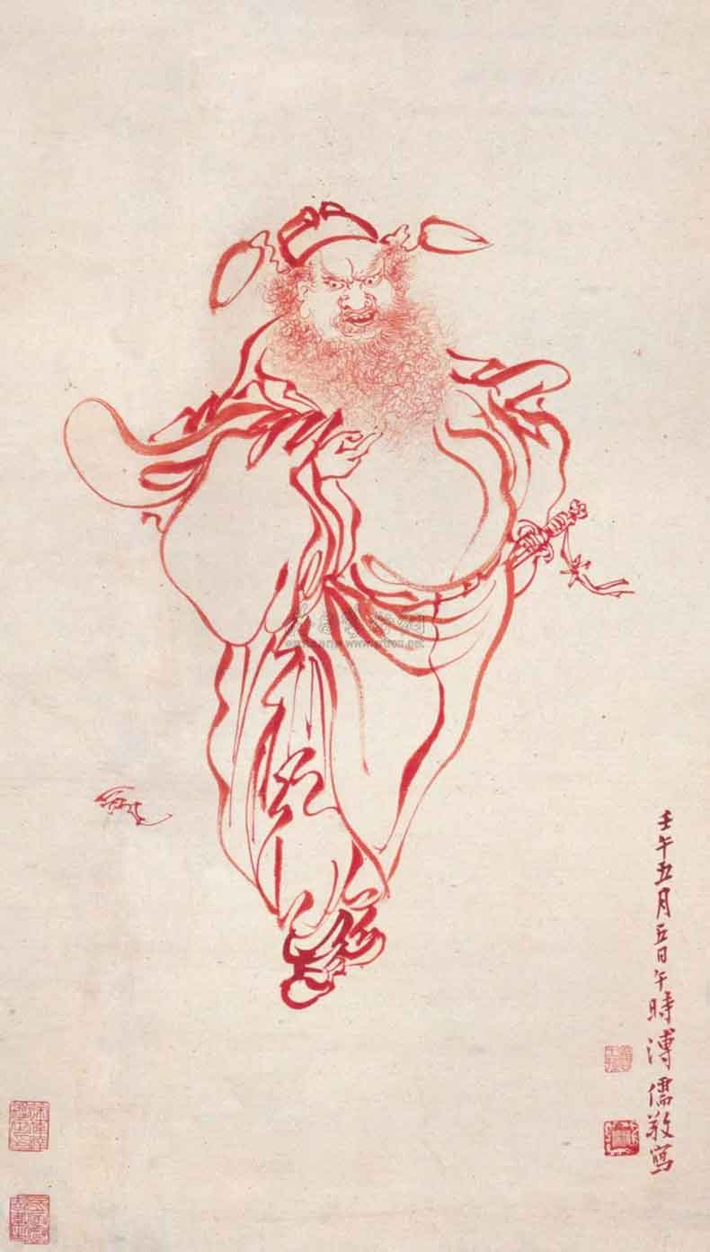 △傅儒(1896~1963)1942年作 朱笔钟馗