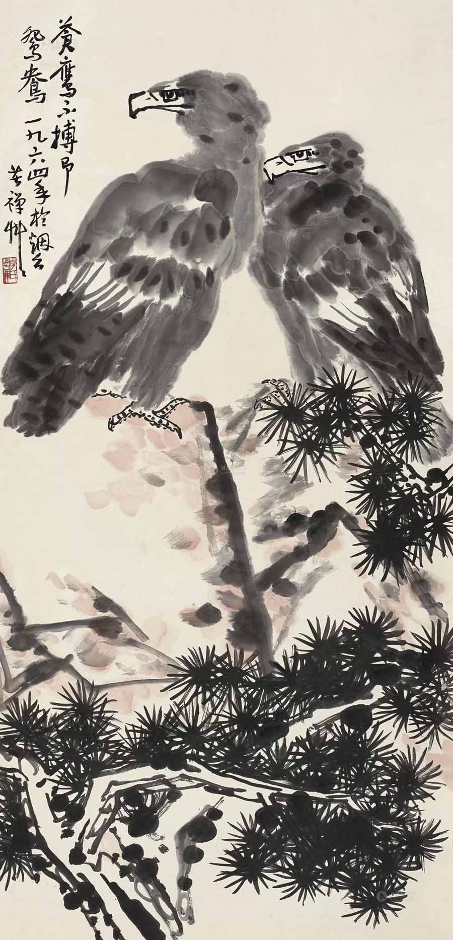 7、李苦禅 1956年作 双鹰图 504.00万
