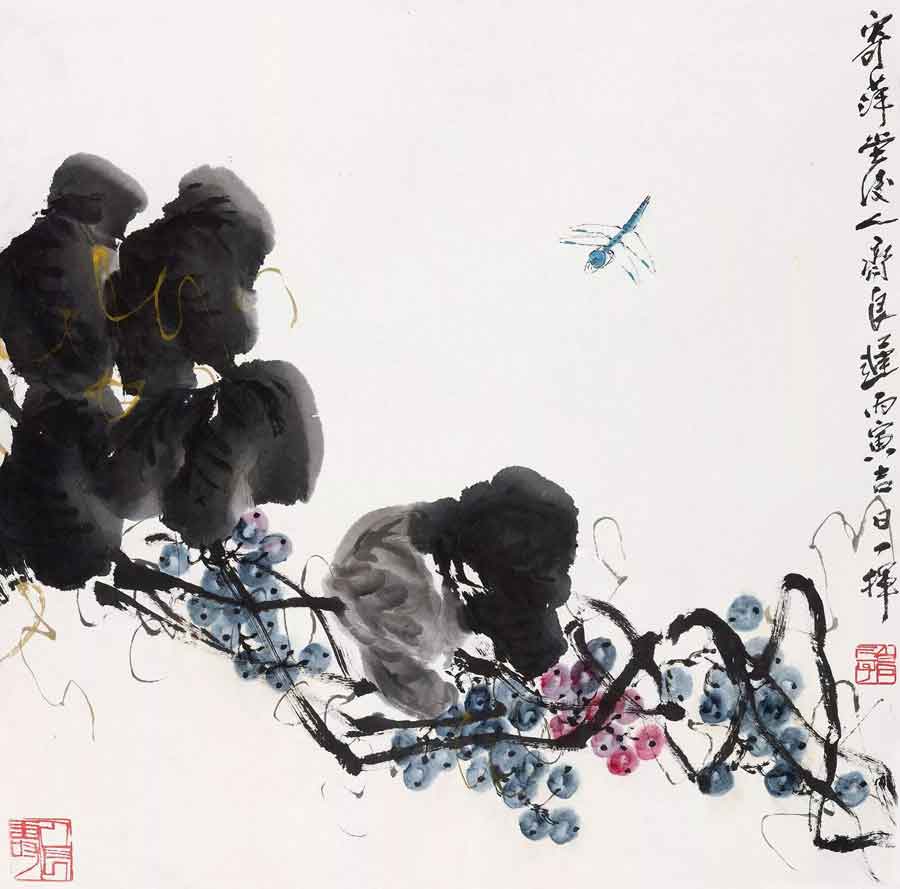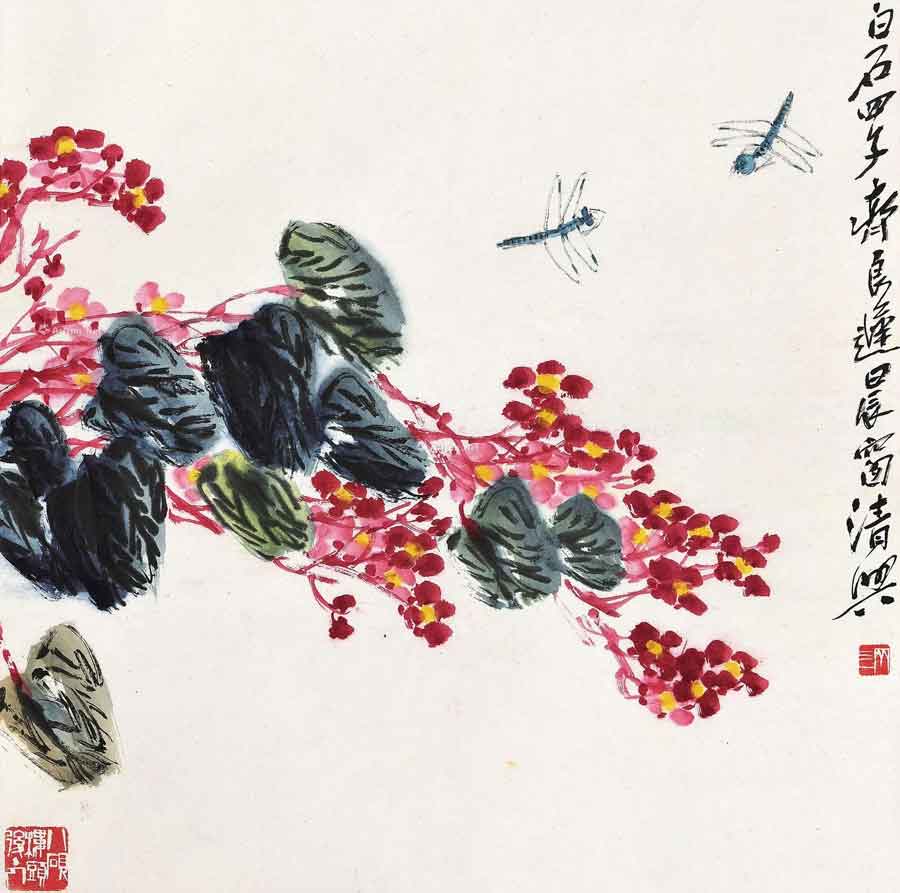 △齐良迟 海棠蜻蜓 65.5×66cm