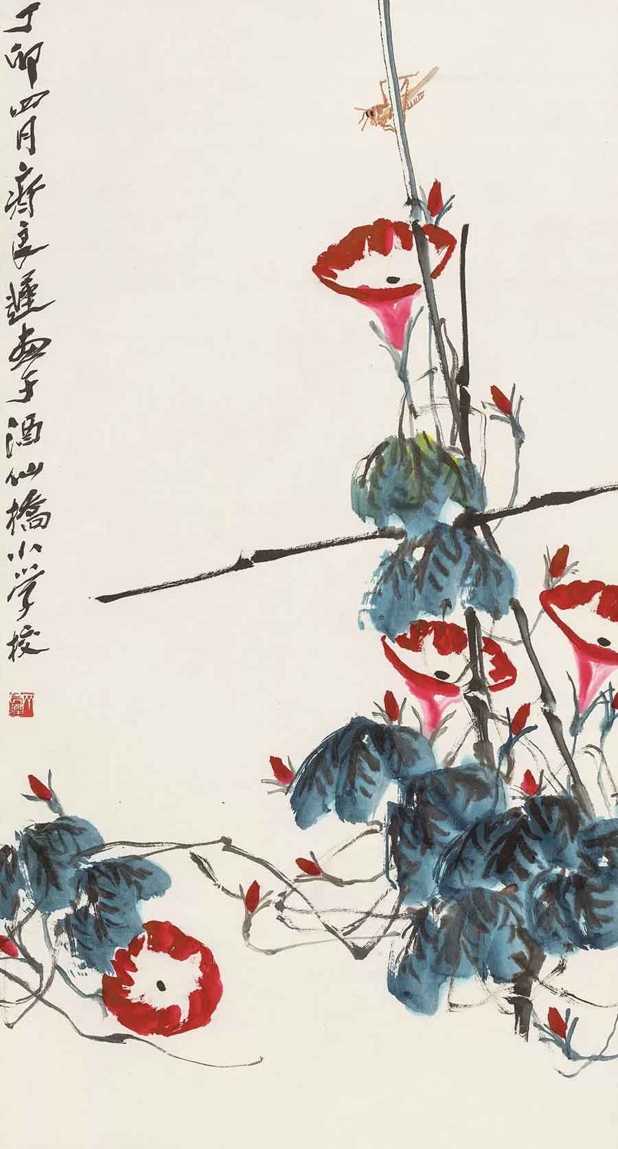 △齐良迟 1987年作 牵牛花 100×54cm