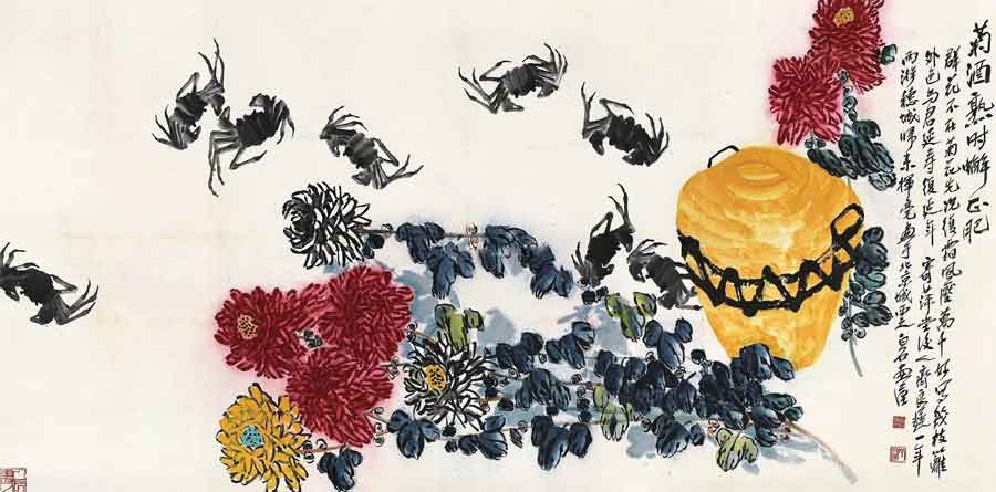 △菊酒熟时蟹正肥 96×192cm