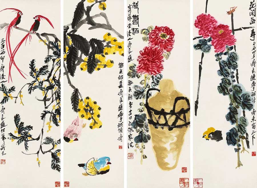 △花开益寿 104×34cm×4