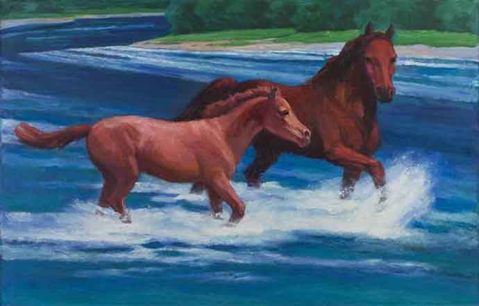 展览特邀知名油画家作品中,既包括詹建俊《共渡》、靳尚谊的《戴尔夫特老街》、许江的《风葵-蕙风》,也有钟涵的《峡间大河》、闻立鹏的《生命一号》、杨飞云的《屋前新绿》、张祖英的《遐龄肖像》、任传文的《浮生-夏至》等。