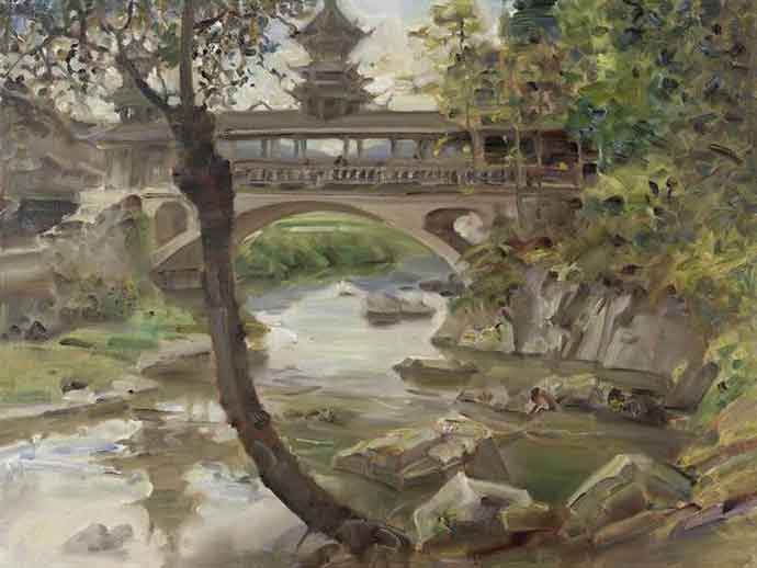 △庞茂琨《风雨桥》 布面油画 60cmX80cm 2017