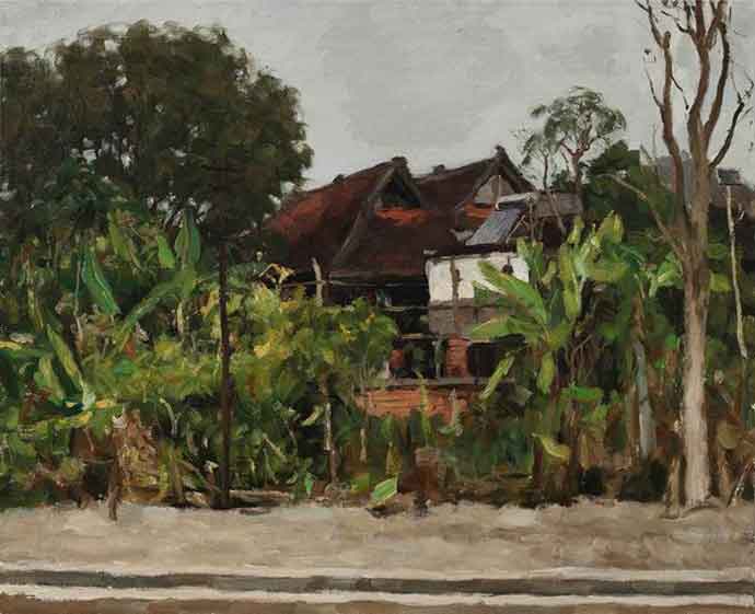 △杨飞云《屋前新绿》 布面油画 50cmX60cm 2019