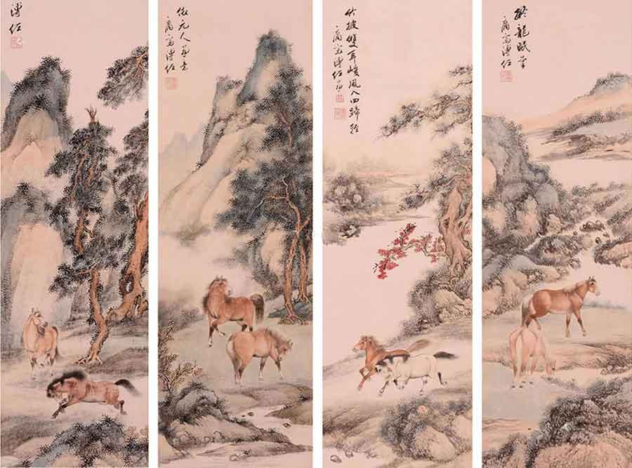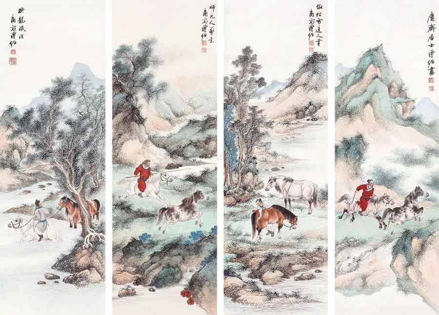 3、溥佐 《山水人马》四条屏 172.50万