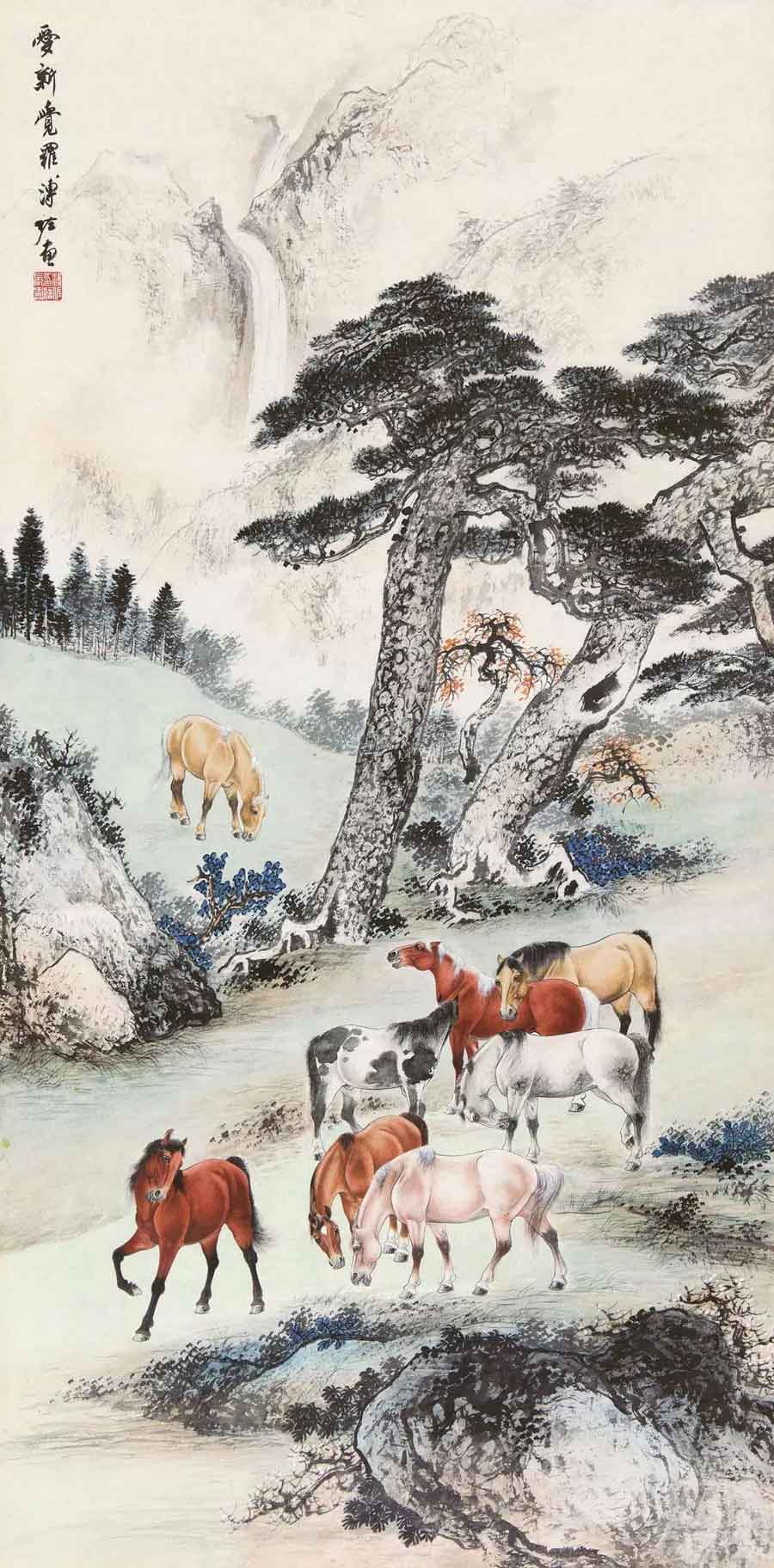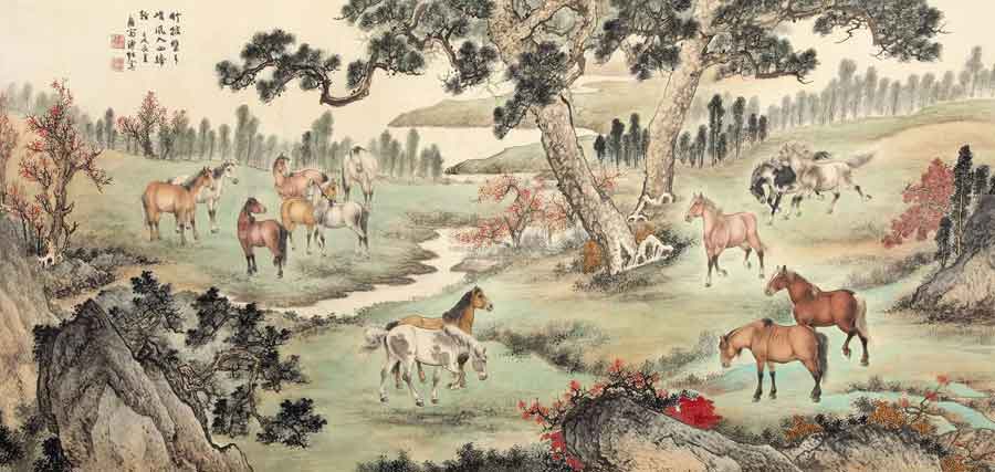 8、溥佐 1982年作 松阴牧马图 97.75万