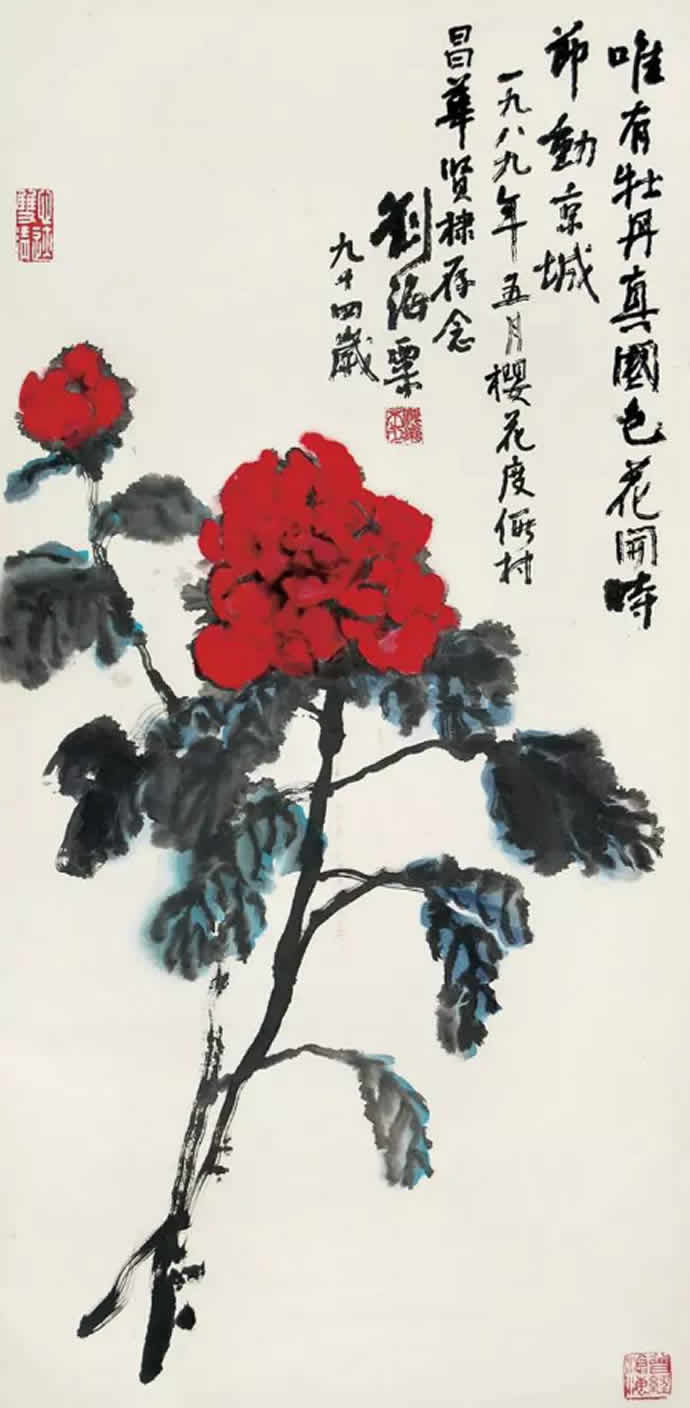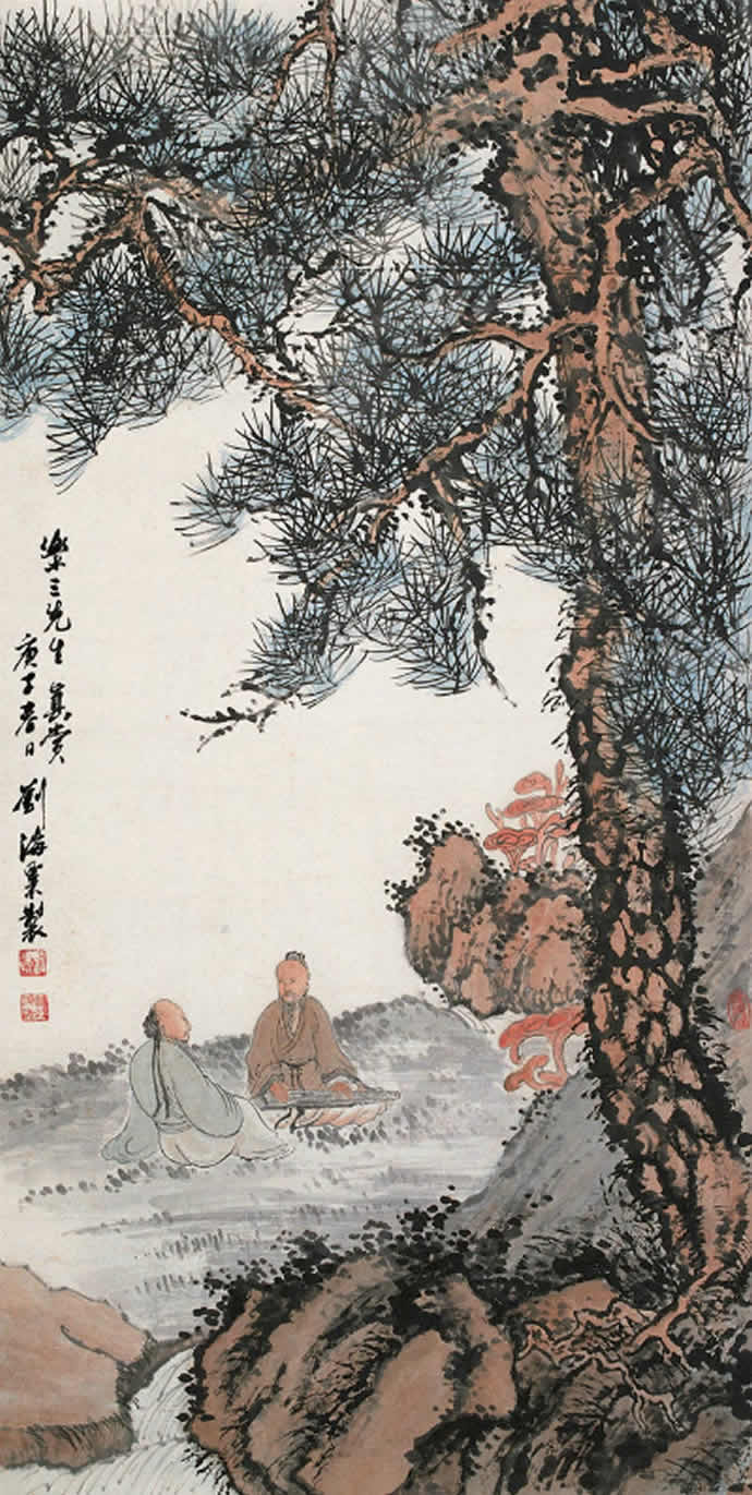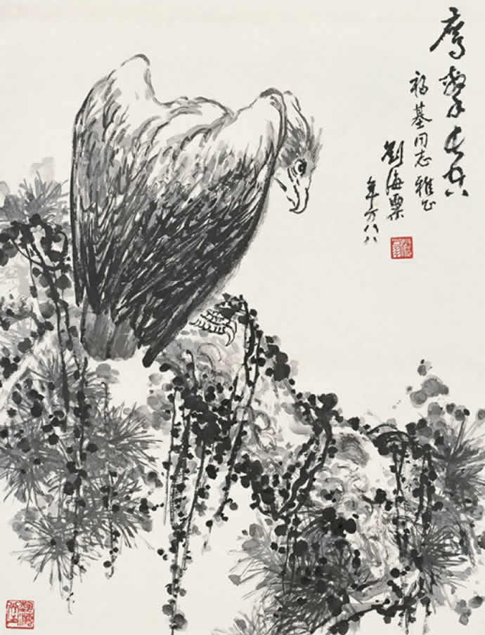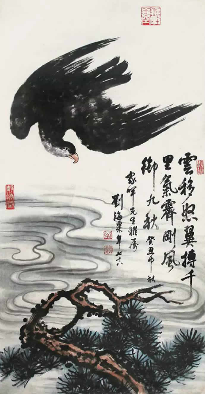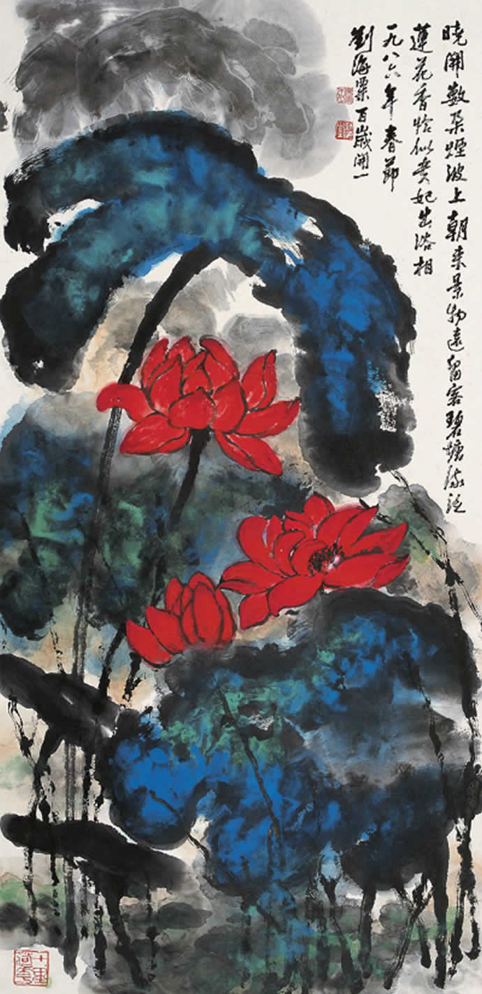 刘海粟,现代画家、美术教育家、中国流艺术家画派创始人之一。江苏常州人。1912年与乌始光、张聿光等创办上海图画美术院,后改为上海美术专科学校,任校长。1949年后任南京艺术学院院长。早年习油画,书法学康有为,苍古沉雄。兼作国画,线条有钢筋铁骨之力。后潜心于泼墨法,笔飞墨舞,气魄过人。晚年运用泼彩法,色彩绚丽,气格雄浑。历任南京艺术学院名誉院长、教授,上海美术家协会名誉主席。中国美术家协会顾问。英国剑桥国际传略中心授予“杰出成就奖”。意大利欧洲学院授予“欧洲棕榈金奖”。