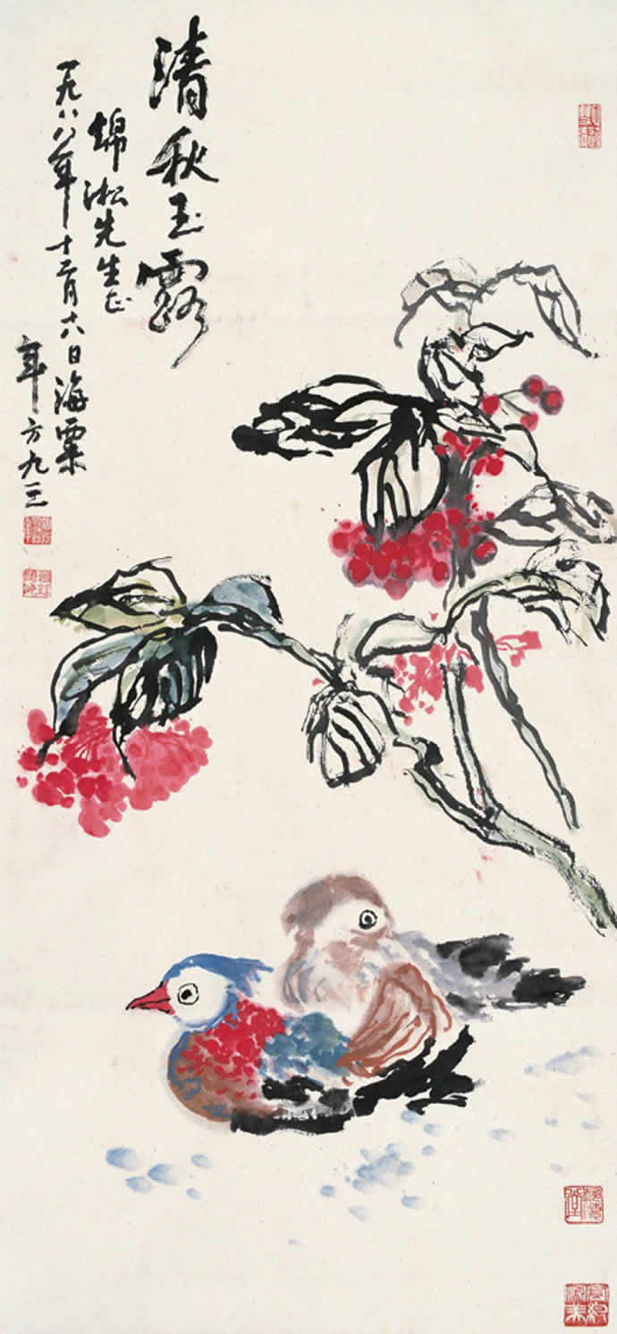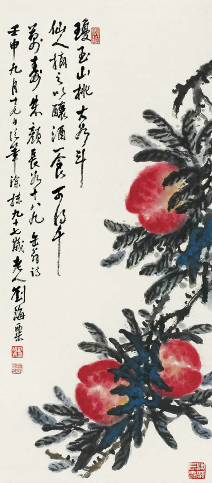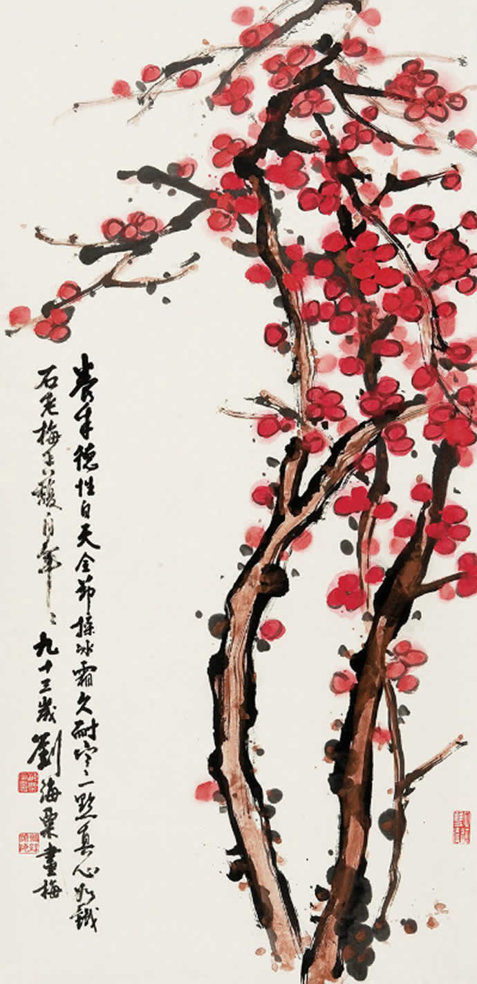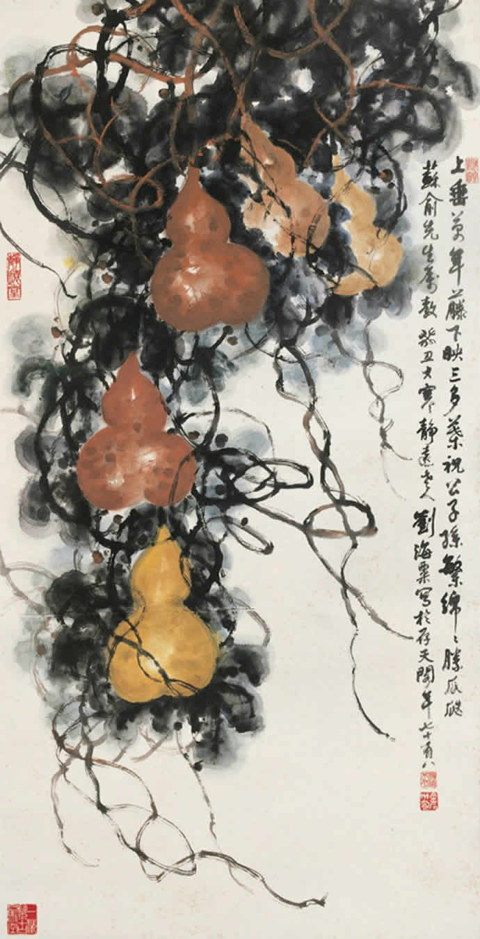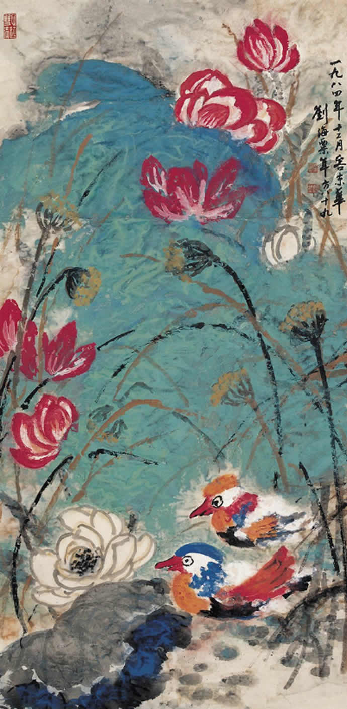 刘海粟,现代画家、美术教育家、中国流艺术家画派创始人之一。江苏常州人。1912年与乌始光、张聿光等创办上海图画美术院,后改为上海美术专科学校,任校长。1949年后任南京艺术学院院长。早年习油画,书法学康有为,苍古沉雄。兼作国画,线条有钢筋铁骨之力。后潜心于泼墨法,笔飞墨舞,气魄过人。晚年运用泼彩法,色彩绚丽,气格雄浑。历任南京艺术学院名誉院长、教授,上海美术家协会名誉主席。中国美术家协会顾问。英国剑桥国际传略中心授予“杰出成就奖”。意大利欧洲学院授予“欧洲棕榈金奖”。