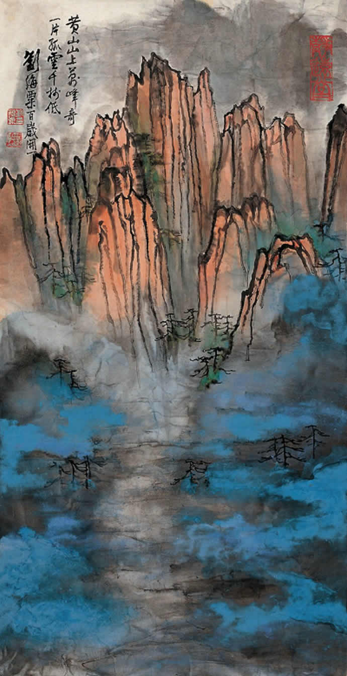 △刘海粟国画《泼彩黄山》,九上黄山代表作【查看详情】