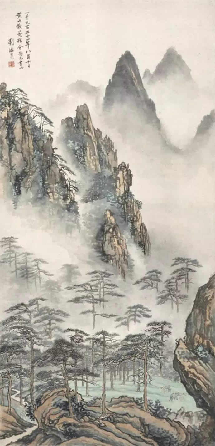 △刘海粟 黄山散花坞 135×65.6cm 1954年作 中国美术馆藏