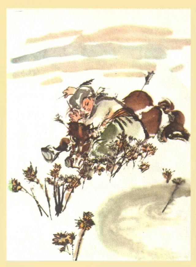 14.小苏和正为失去爱马而哭泣悲伤,在凄暗的草原彷徨。忽然,带箭的马儿飞奔来到身旁,向小主人做最后的告别,『砰』的倒地死亡。