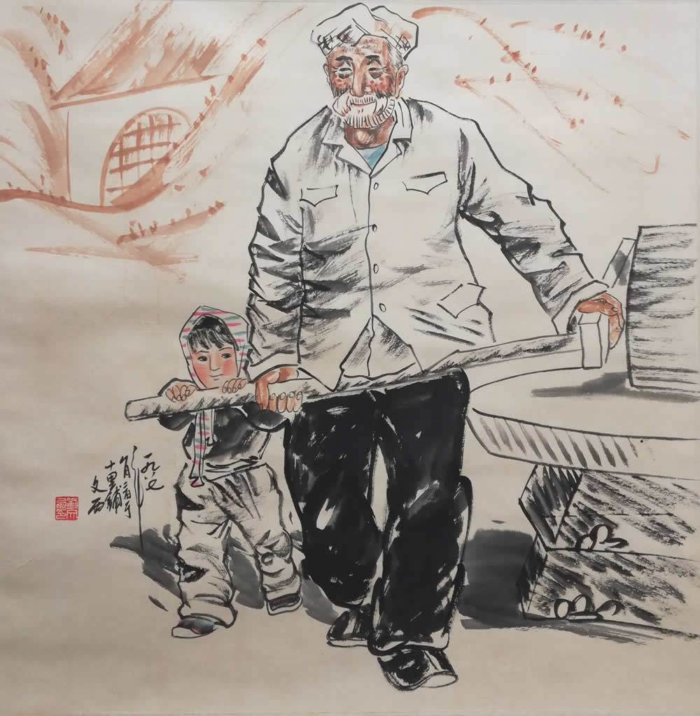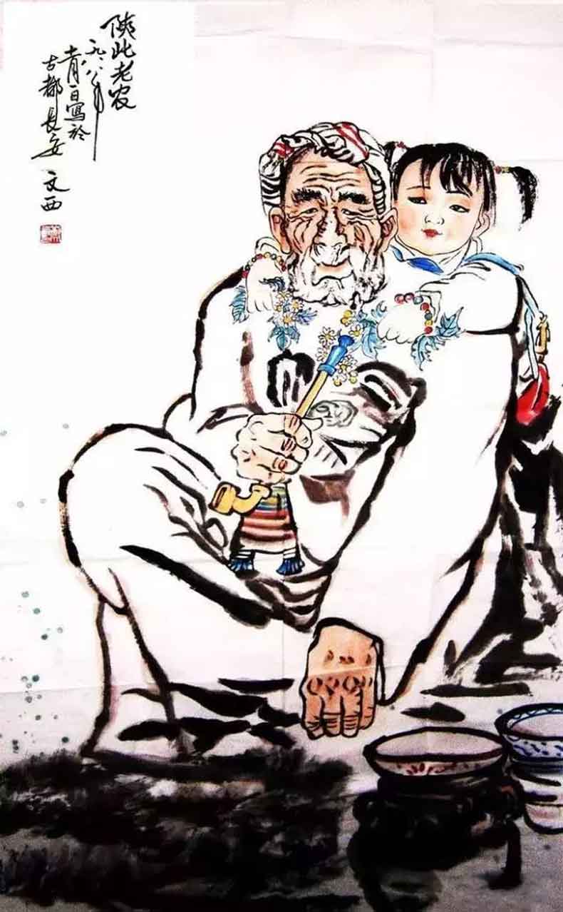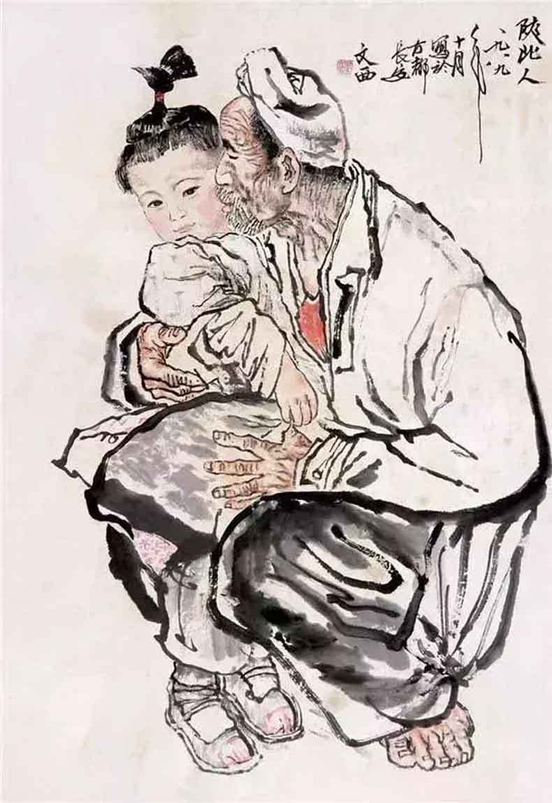 △刘文西人物画《爷孙俩》,典型有代表性的黄土画派作品