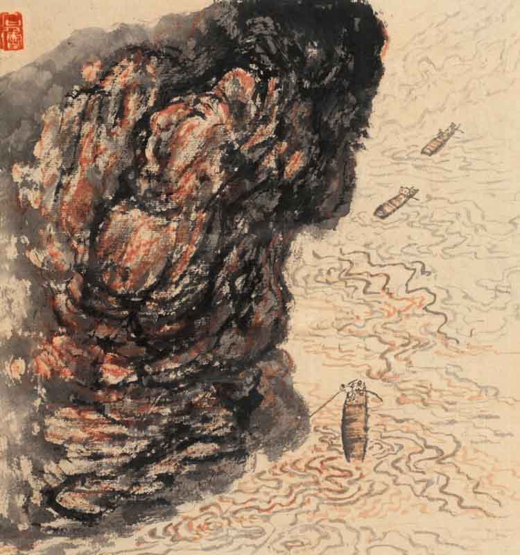 石鲁作品《江上行舟》