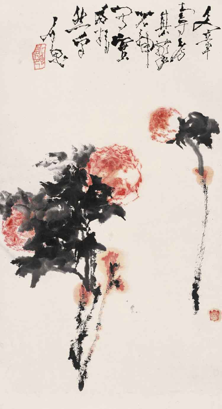石鲁作品《秋菊图》