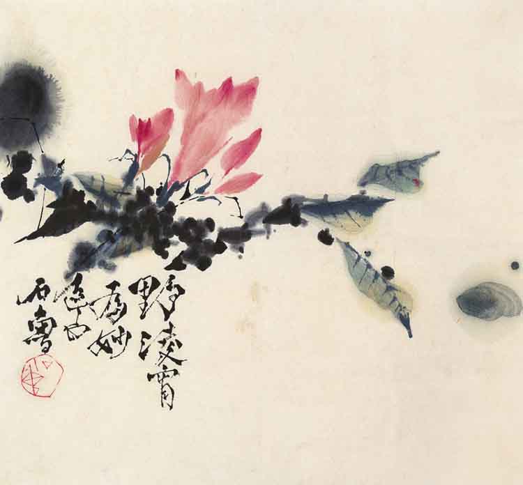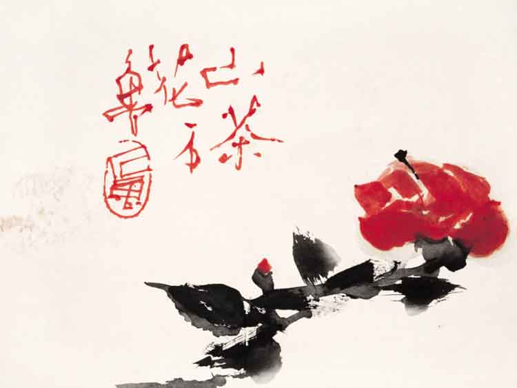 石鲁作品《山茶花》