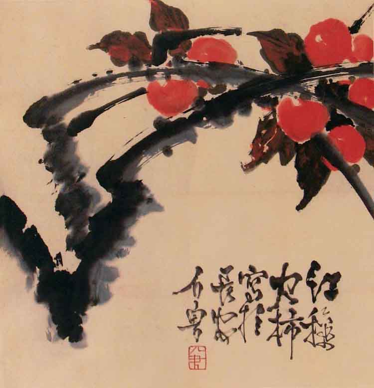 石鲁作品《柿子图》