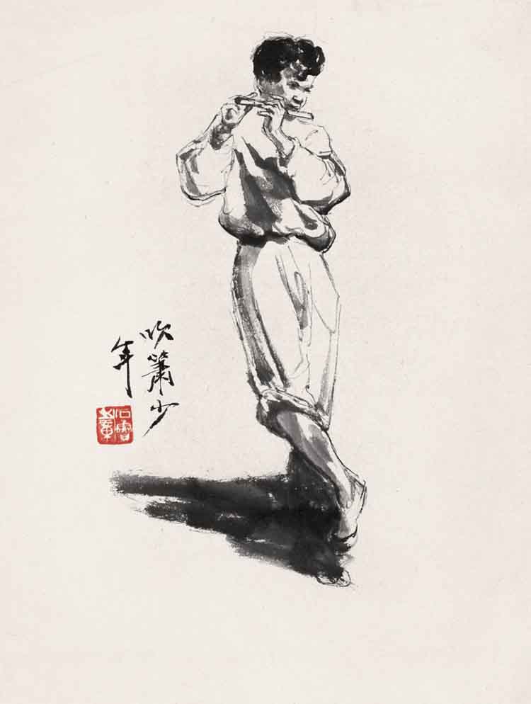 石鲁作品《吹箫少年》