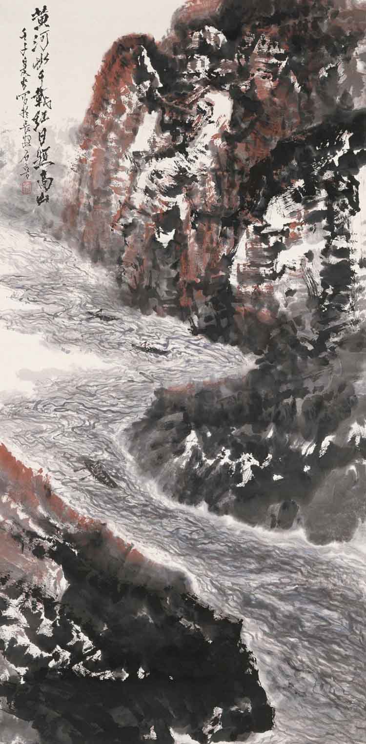 石鲁作品《黄河急流》