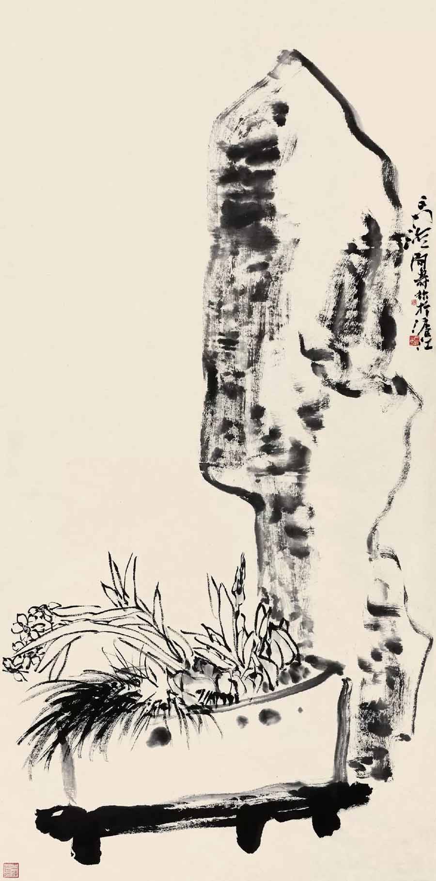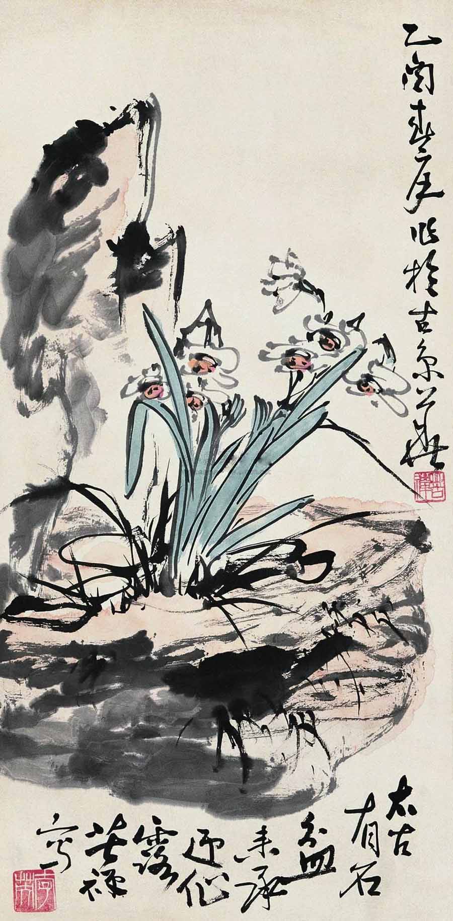 △潘天寿 水仙灵石图 143×70cm