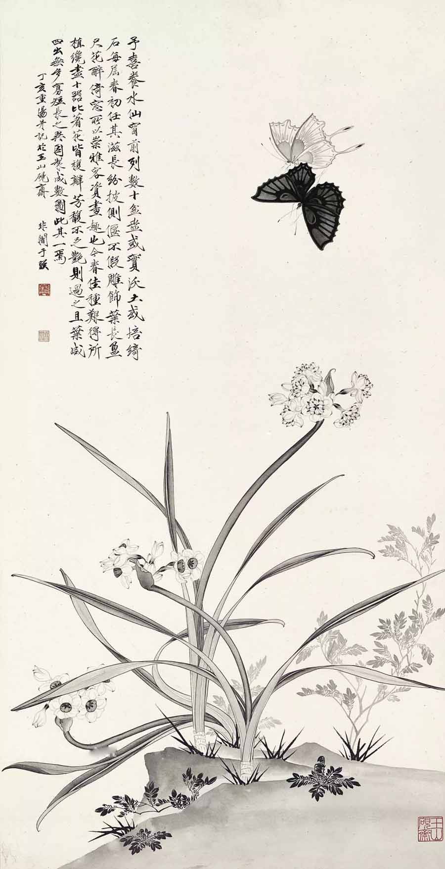 △于非闇 1947年作 水仙蛱蝶 91.3×46.9cm