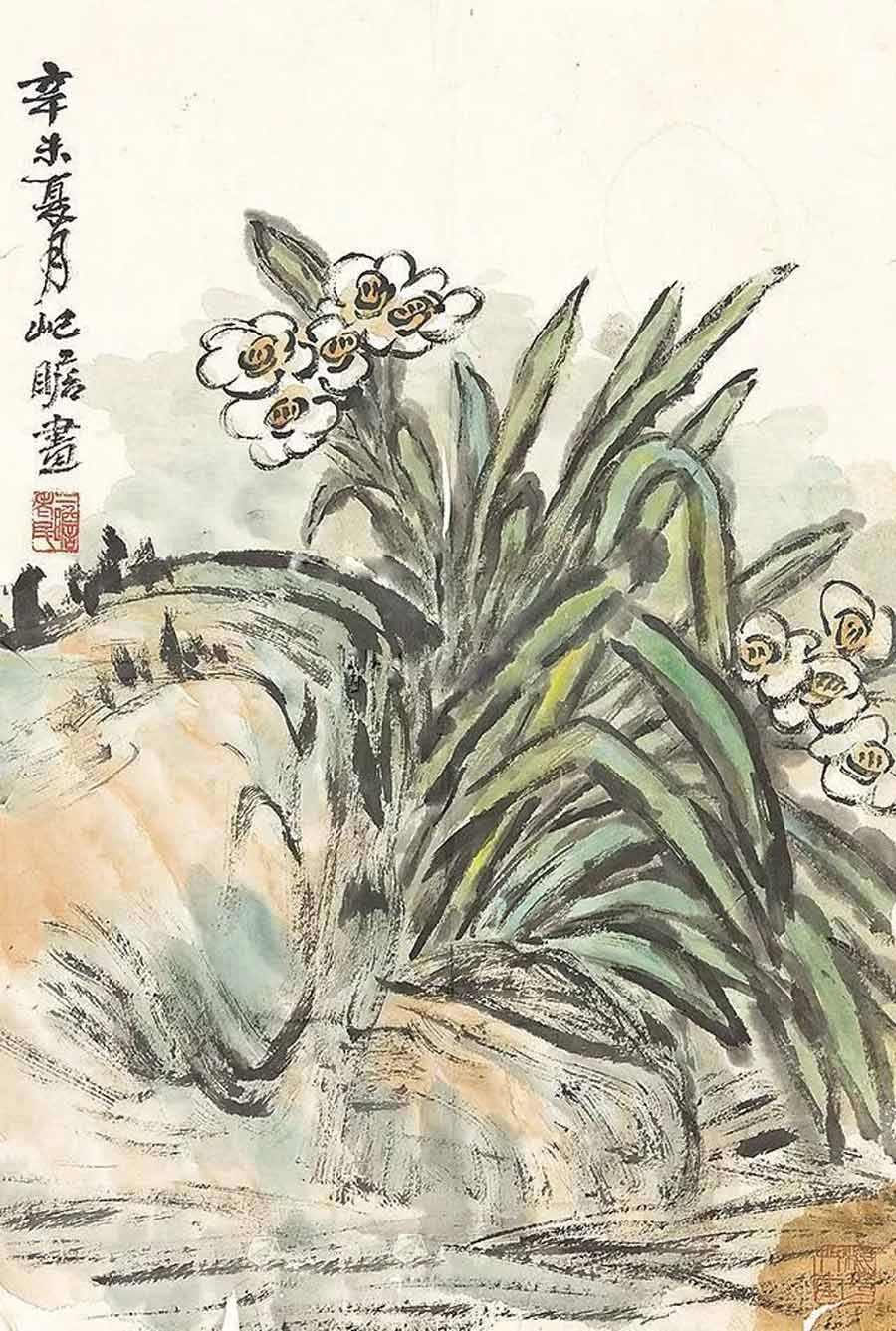 △谢稚柳 1983年作 山谷水仙 45×34cm