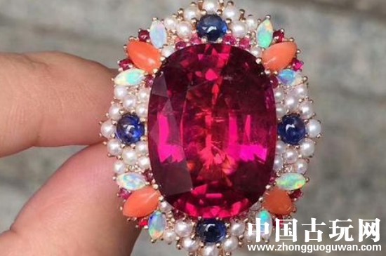 帝王托帕石是硅铝盐酸、氟和氢氧化物复合而成,硬度在8左右,除了粉红色帝王托帕石,其他颜色的帝王托帕石的二色性很弱,颜色以橙黄色和红褐色为贵。碧玺是硼硅盐酸结晶体,有很强的二色性,颜色因化学成分的不同而变化。