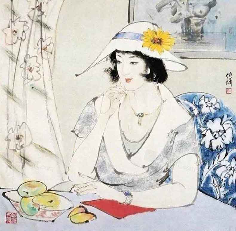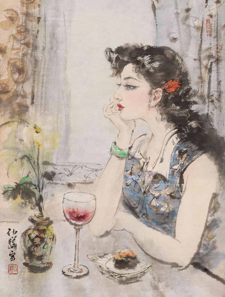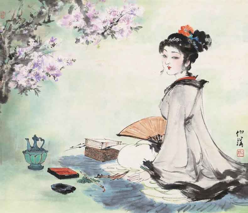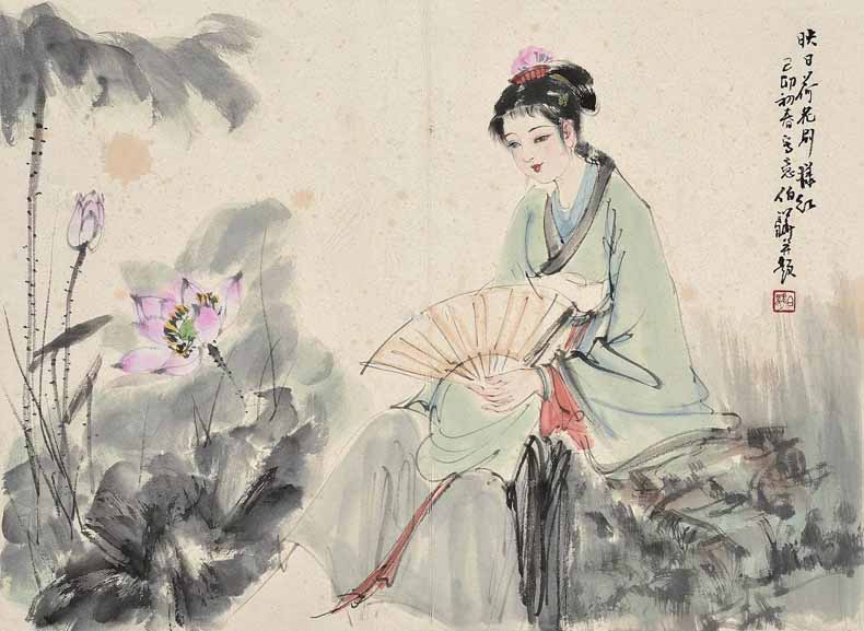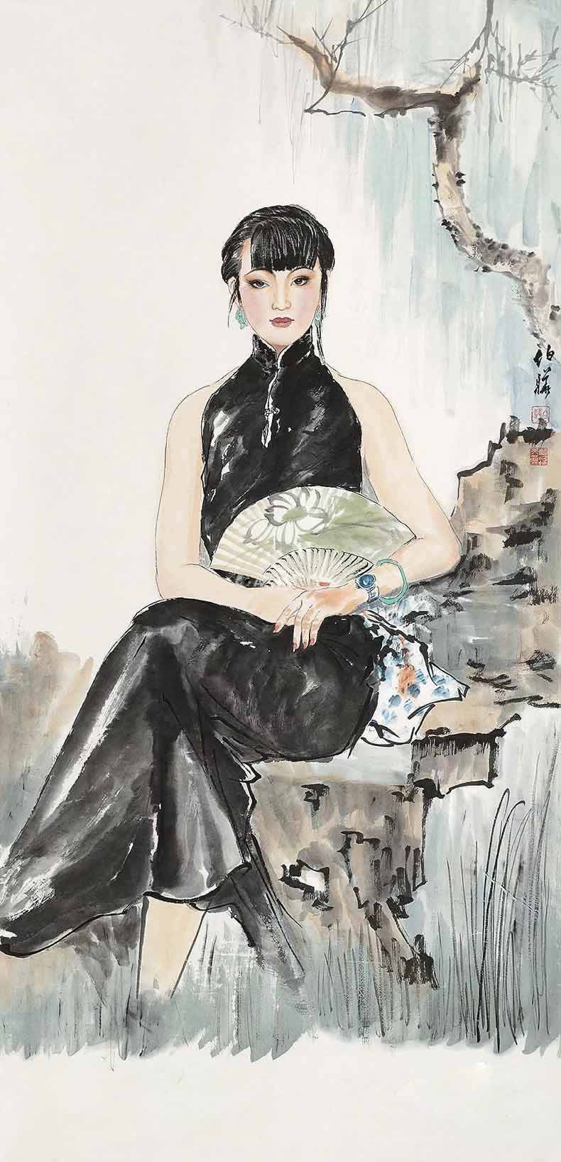 △白伯骅作品-执扇仕女