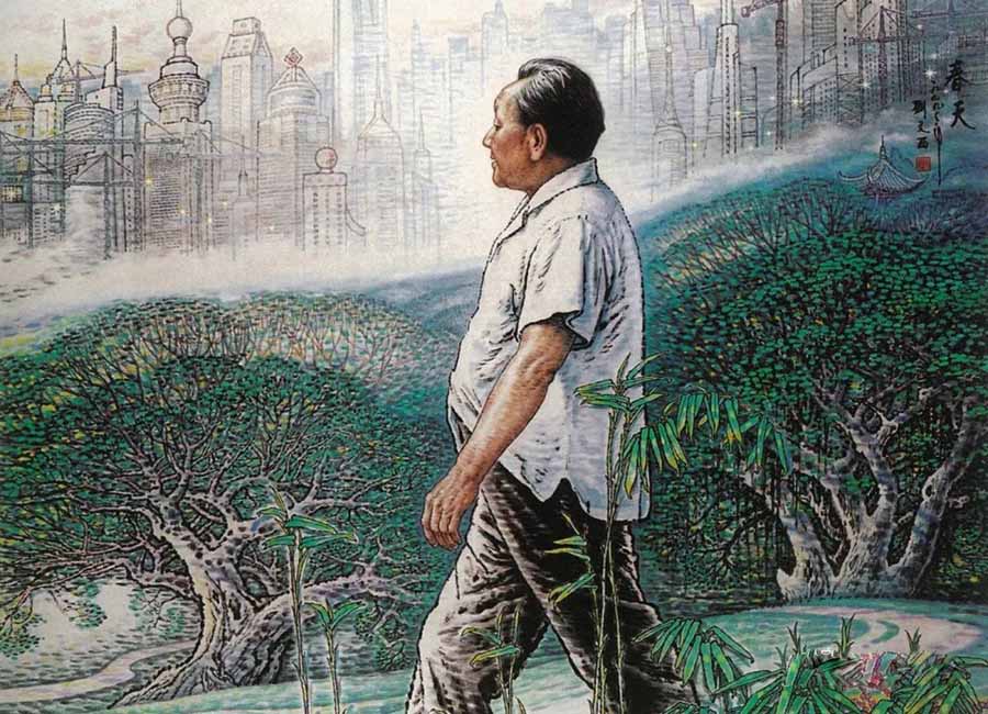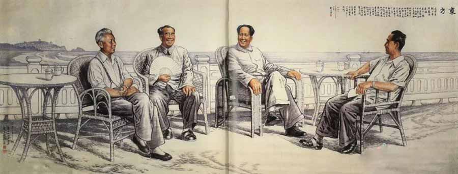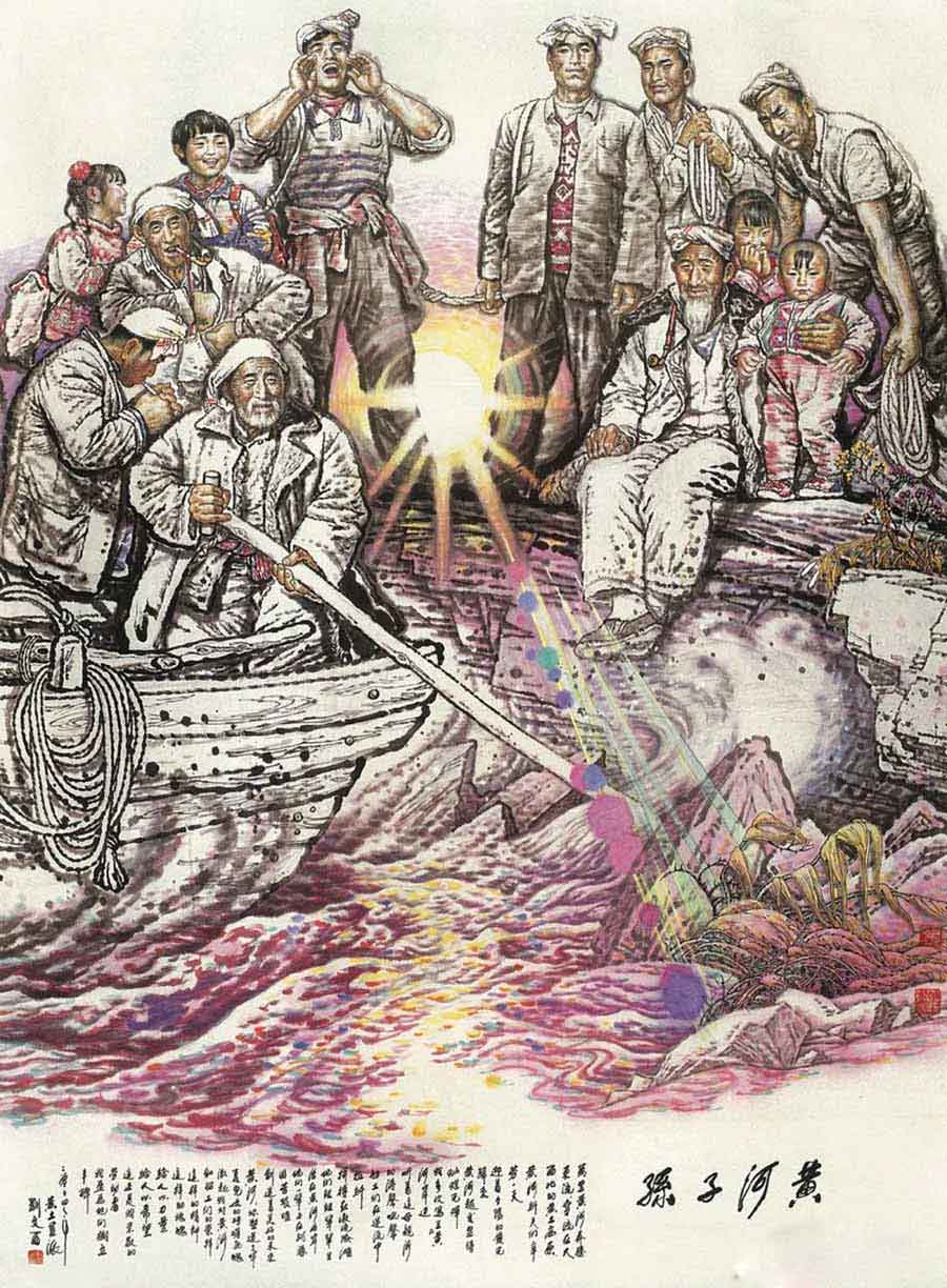 第二个特点,以人物画为主。我们重要推动人物画发展,所以要把人物画看得很重,我们吸收诸多优秀画家,成为黄土画派会员,多数也是画人物画的,也有山水花鸟,甚至于油画、雕塑、版画都有我们的成员,同类形发展,但是以国画为重,国画以人物画为重,山水花鸟也要表现社会表现时代,表现现代的时代的发展,要有人民群众的感情,要强调这方面,既要有民族精神,又要有时代性。黄土画派承担的任务是很重的。