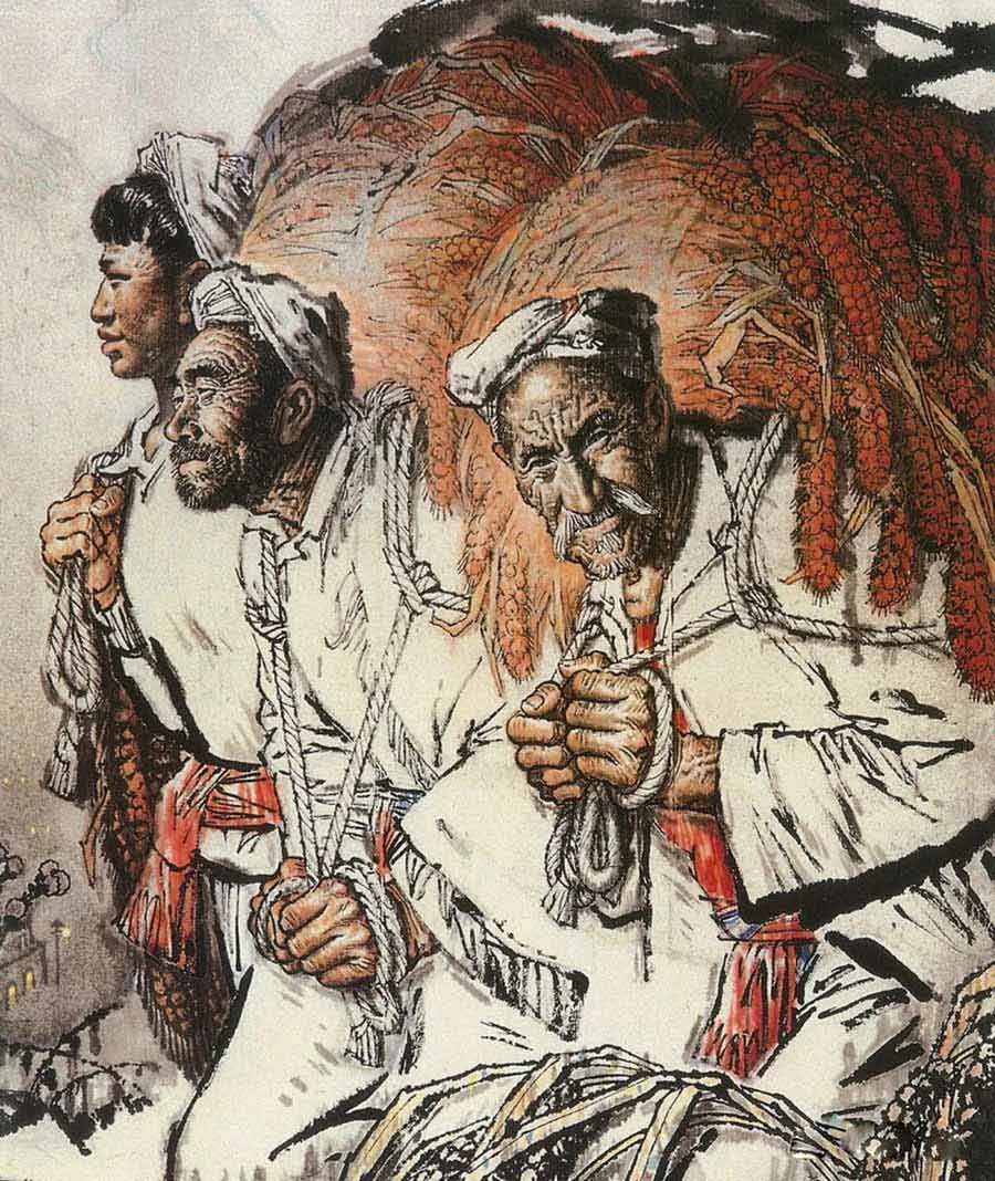 ▌本站藏品:刘文西人物画《爷孙俩》,典型有代表性的黄土画派作品
