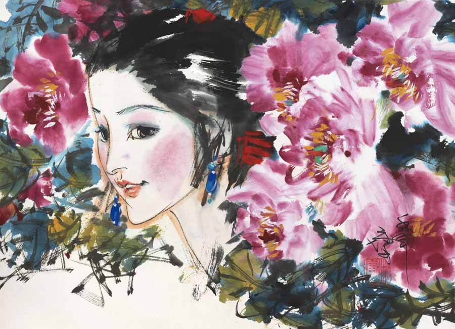 △ 林墉(b.1942)牡丹少女