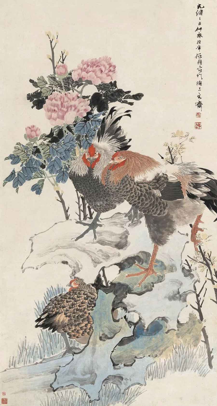 △任伯年(1840~1896)1877年作 牡丹大吉图