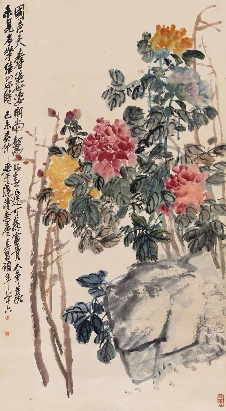 △吴昌硕(1844~1927)1919年作 富贵牡丹
