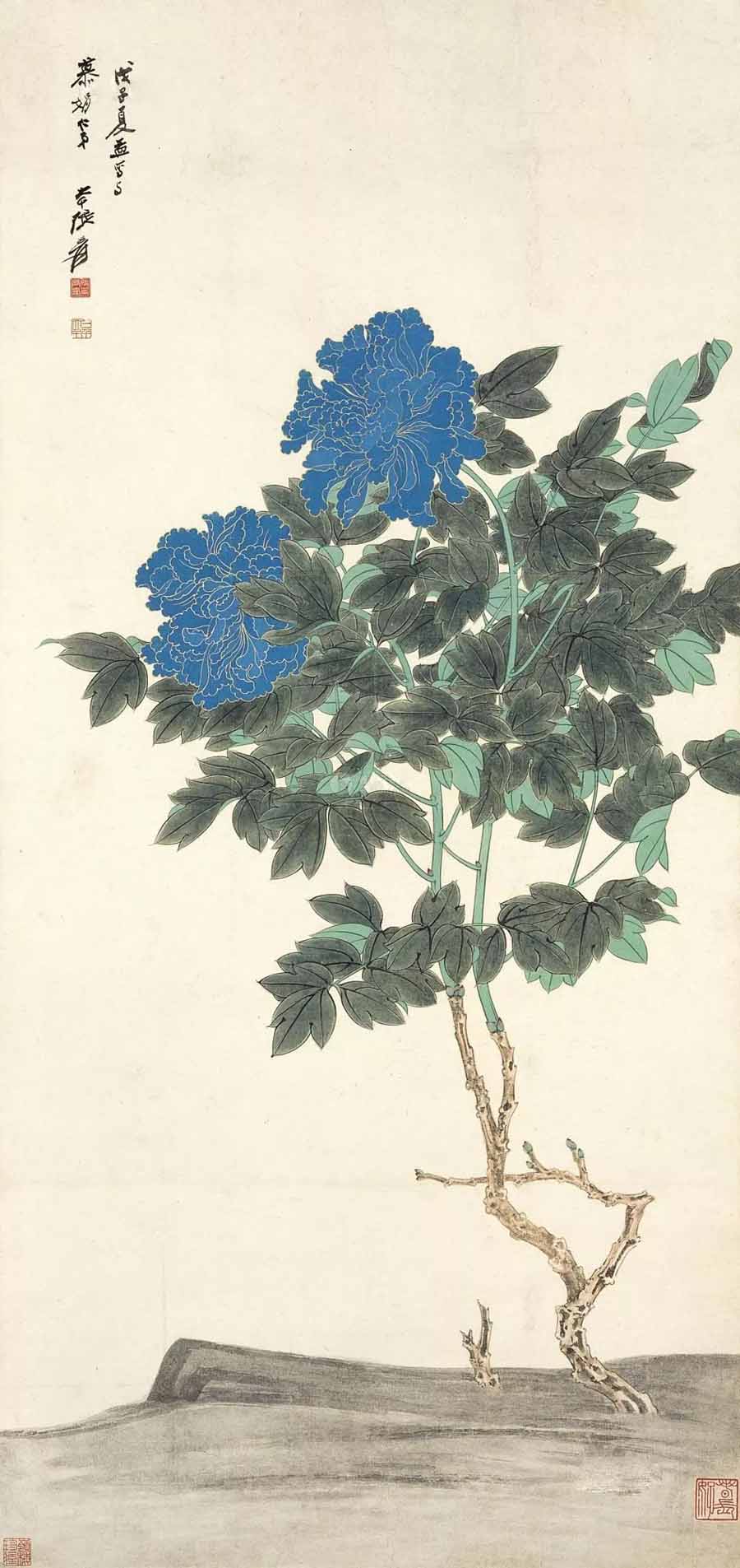 △张大千(1899~1983)1948年作 佛头青牡丹