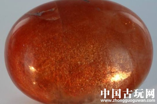 日光石是在火成岩和沉积岩中形成的,因其呈现出的日光效应而得名。日光石又名太阳石,晶体中含有赤铁矿、针铁矿和云母等矿物包裹体,对光反射会出现金黄色耀眼的闪光。天然日光石一般为红色,有时局部灰色,闪光点较稀。