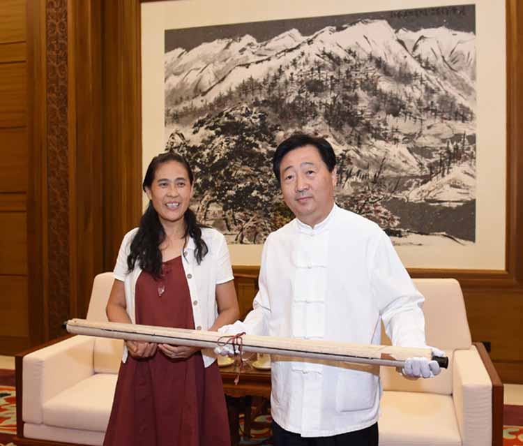 石鲁女儿石丹向中国国家博物馆吕章申馆长正式交付《山区修梯田》