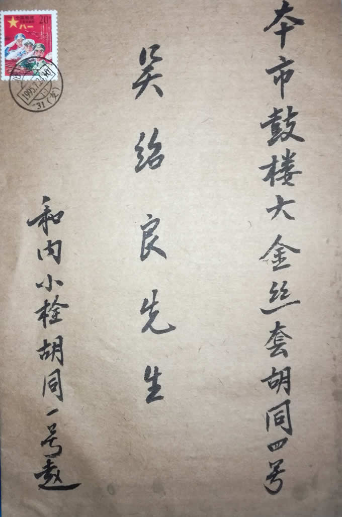 本市鼓楼大金丝套胡同四号。吴绍良先生。河内小栓胡同一号赵。